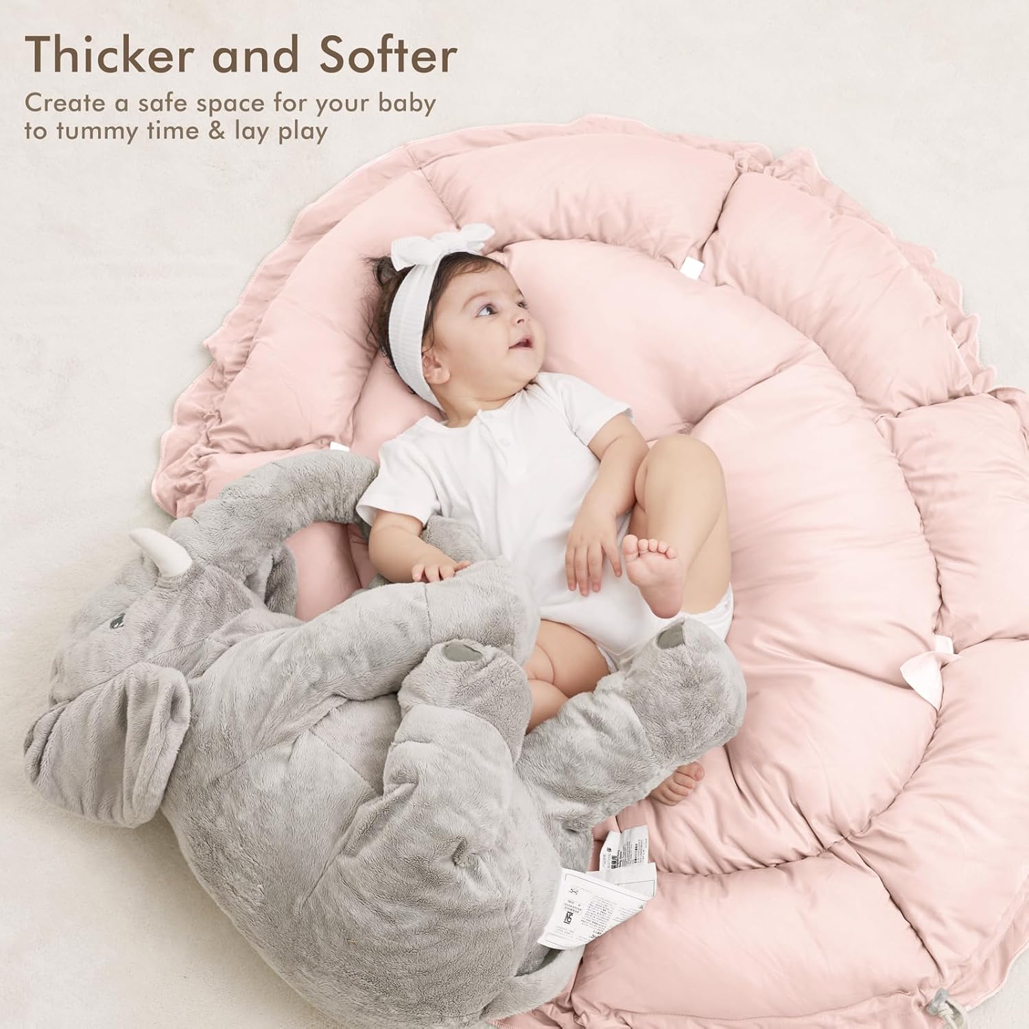 - THICKER & SOFTER: The reversible play mat crafted from premium plush material, offers a fantastic amount of cushion. Its neutral color scheme blends in with your homeβs aesthetic so you can keep it out even after playtime is over.