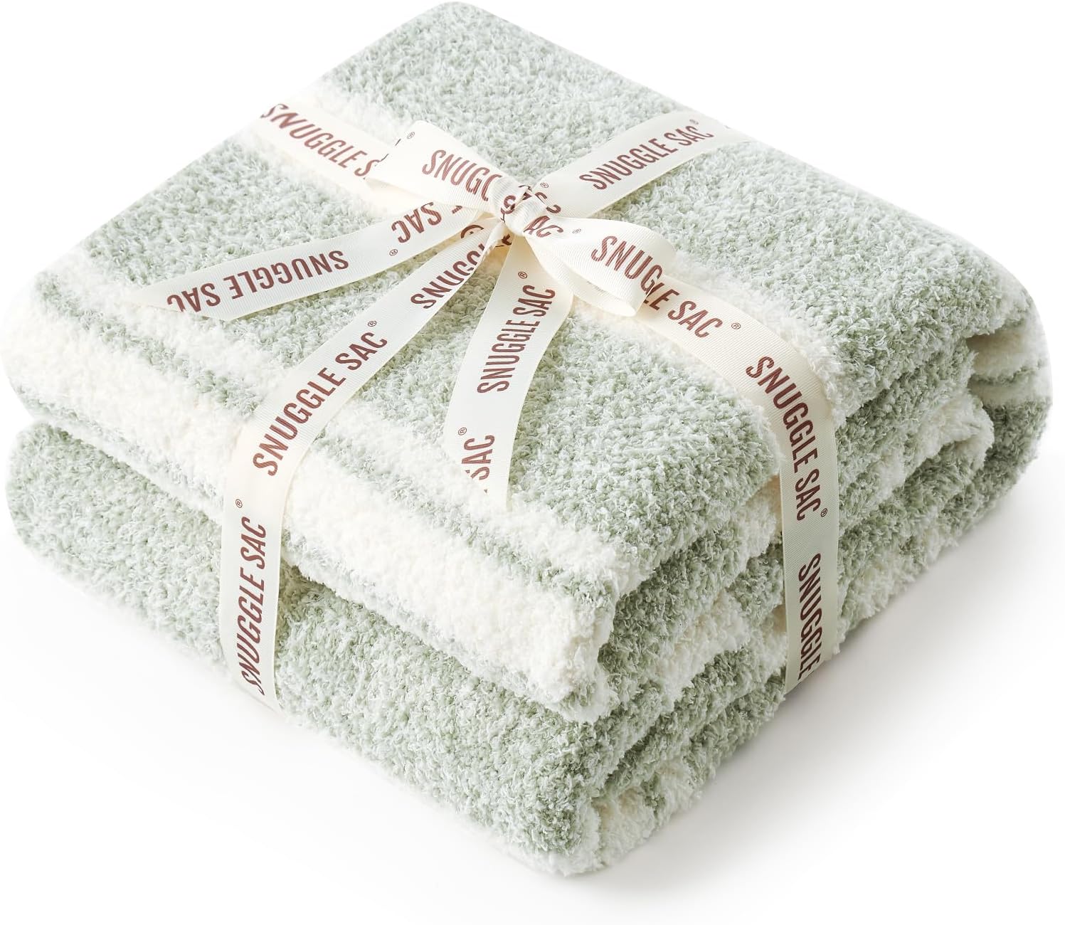 Snuggle Sac Stripe Sage Green Blanket Twin Size, Reversible Super Soft Warm Bed Blankets, Cozy Knit Fuzzy Blanket for Bed,Sofa, Living Room, Stripe Green, 60"x80"
