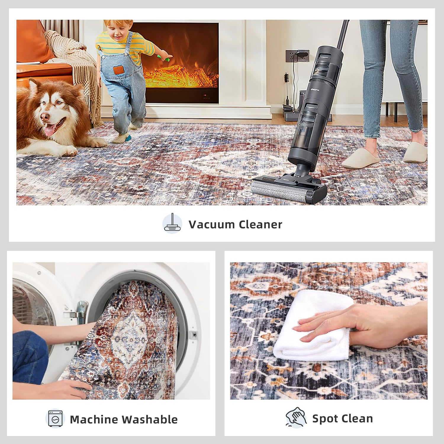 - [Non-Slip Backing]: The large area rug is made of snowflake-shaped TPE non-slip rubber backing takes more safety. The non slip rug is deal for everyday indoor locations where kids or pets are active.