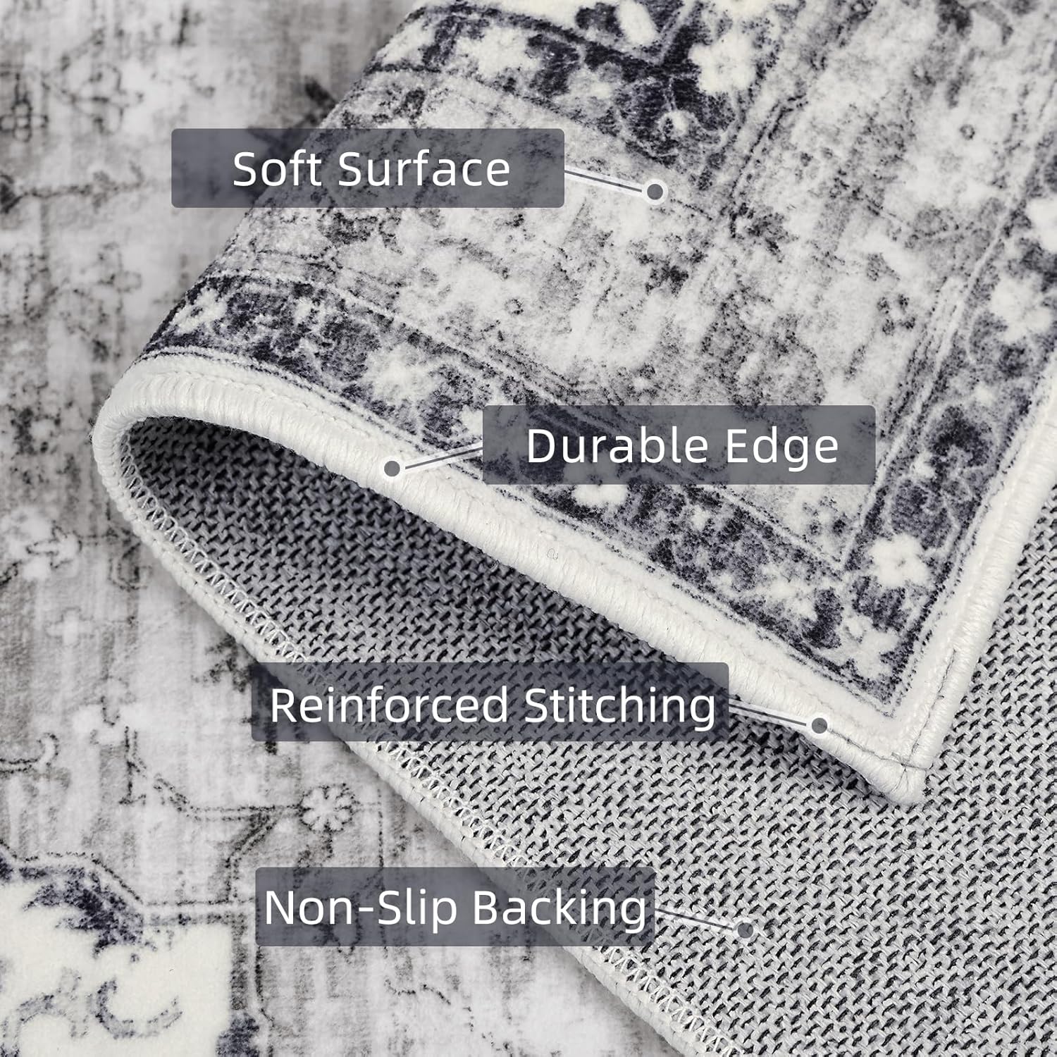 - [Non-Slip Backing]: The large area rug is made of snowflake-shaped TPE non-slip rubber backing takes more safety. The non slip rug is deal for everyday indoor locations where kids or pets are active.