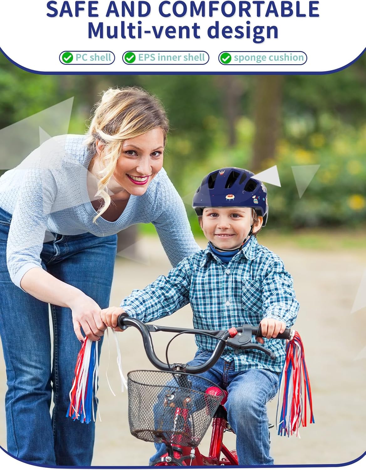 - SAFE AND COMFORT: XJD kids bike helmet equipped with 14 air vents, integrated bug mesh in the front vents that will keep your little rider comfortable of exercise, reduce sweating. It's covered in soft velcro padding that's comfortable for little chins