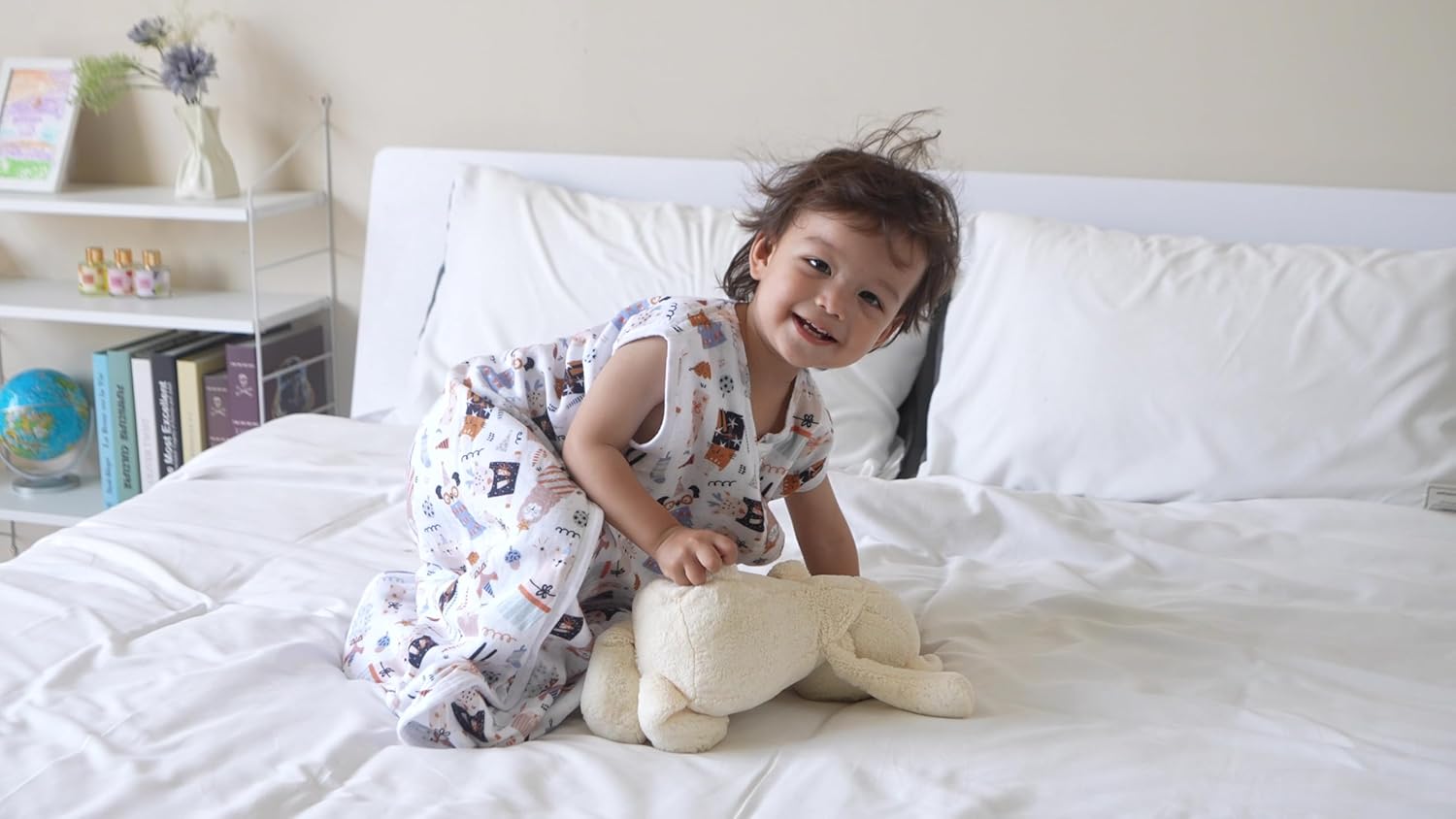 - Premium Organic Cotton Comfort: Experience the luxurious softness of our 100% organic cotton muslin sleep sack. With four layers of breathable fabric, this 0.5 TOG rated garment (ideal for 69-79°F / 20-26°C) ensures optimal temperature regulation year-round. The superior breathability of muslin promotes restful sleep, making it the perfect choice for your toddler's comfort