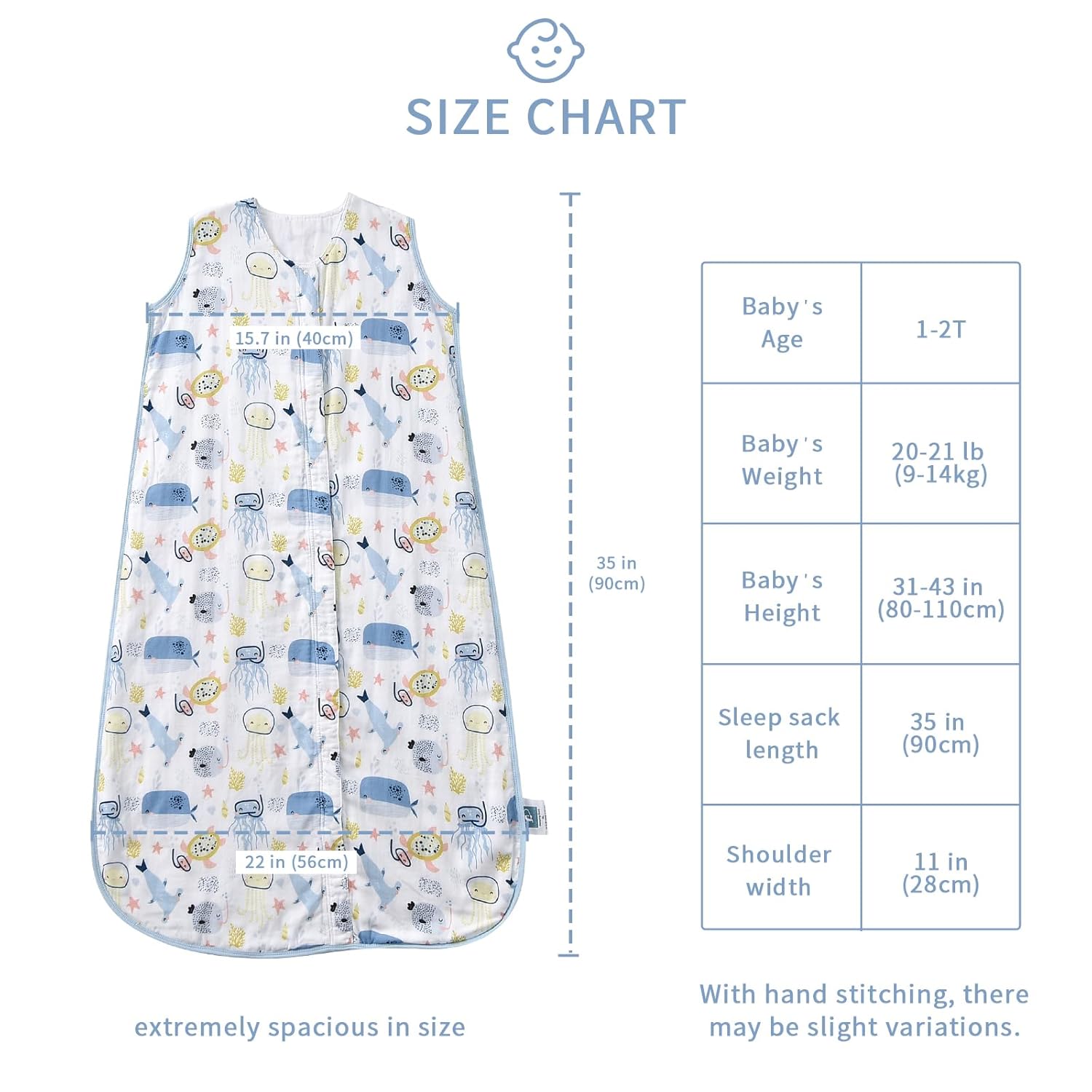 Baby Sleep Sack 1-2 T Baby Wearable Blanket 100% Organic Cotton 0.5 TOG Muslin Toddler Sleeping Sacks 2- Way Zipper Warm 12-24 Months