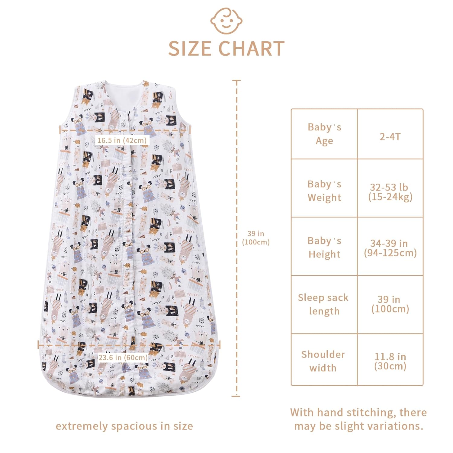 Toddler Sleep Sack 2-4 T Baby Wearable Blanket 100% Organic Cotton 0.5 TOG Baby Muslin Sleep Sacks 2- Way Zipper Soft XL 2T 3T 4T