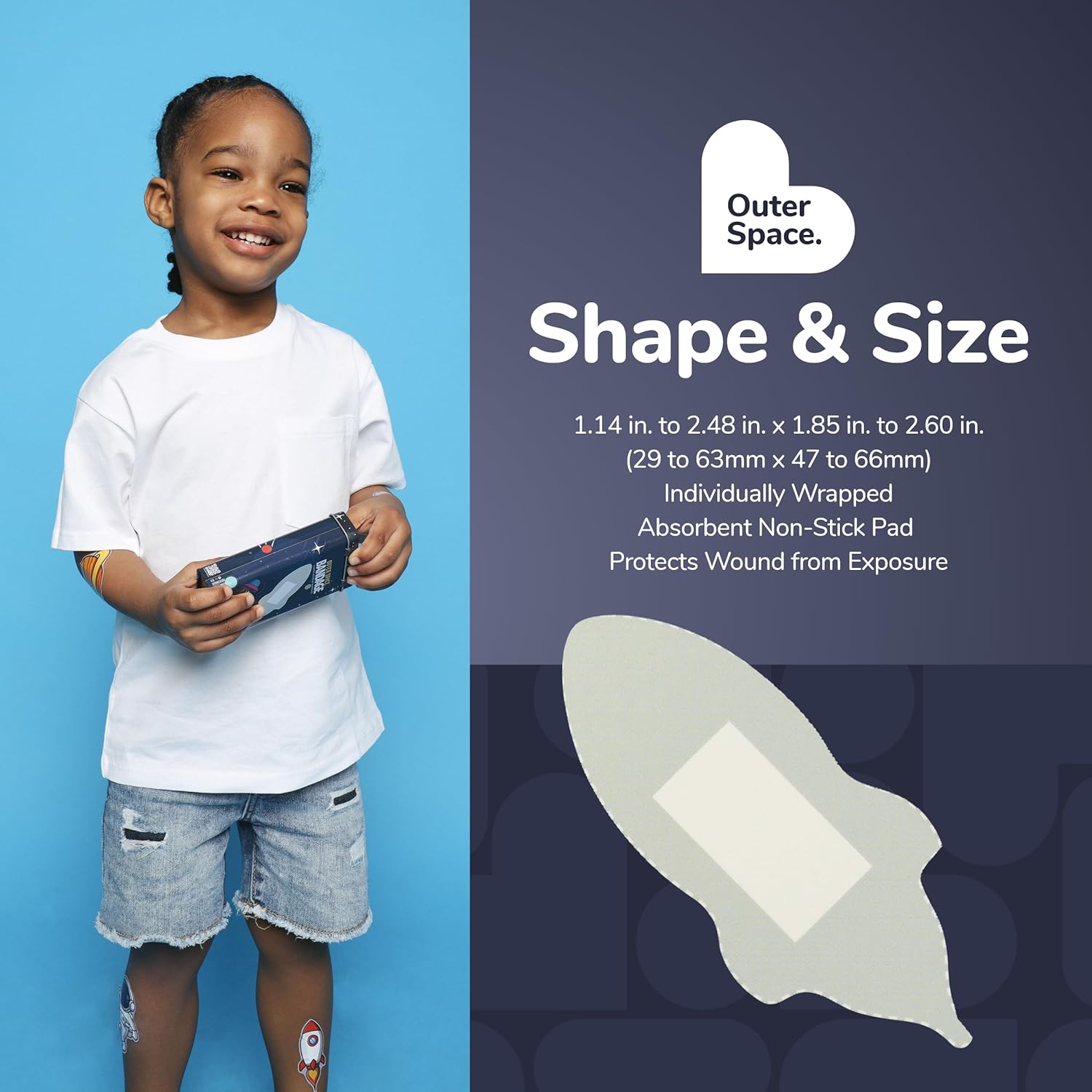 - SAFE PACKAGING: These sterile Outer Space bandages come in cute and adorable packaging, and are individually wrapped for safe handling; small bandages help protect kids' sensitive wounds from coming into contact with dirt for first aid wound care
