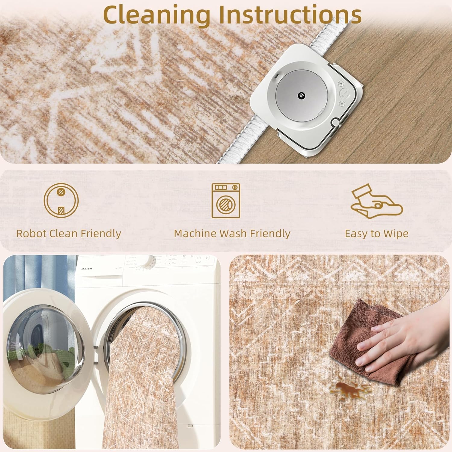 - Machine Washable Rug: Our 2x3 washable rug has stain and splash-resistant properties. Use a broom or vacuum cleaner to Clean up or hair for daily care. The rug can be washed directly in the washing machine in cold water, making cleaning a breeze.(Please remember not to use bleach!)
