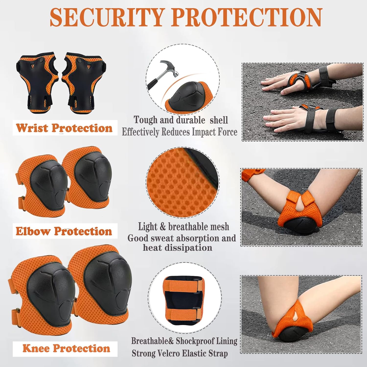 - 【Suitable for Multiple Sports】ours The kids helmet and knee elbow pads with wirst guards are designed for kids sports saftey protection especially for any outdoor activities for many outdoor sports such as skating, skateboard, scooters roller, skating balance bike helmet can provide professional protection to your children, our kids away from hurt when they enjoy the joy of sports.