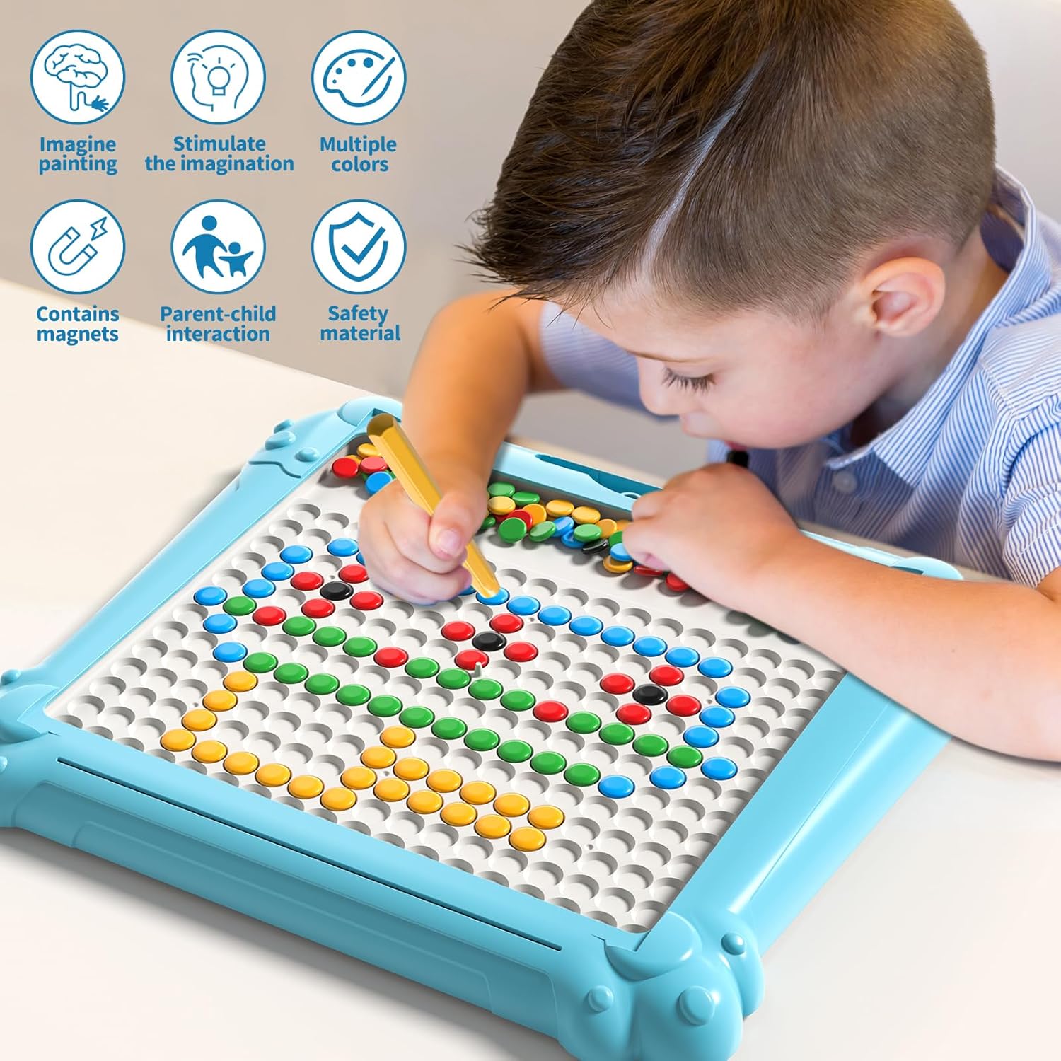 - 【Well Designed Non-toxic】Magnetic drawing board is made of kids friendly ABS plastic material. The rounded corners of the magnetic dots board are smooth to take care of little ones' small hands. All magnetic beans are sealed inside a clear acrylic panel which can effectively avoid the risk of toddlers swallowing. The magnetic pen has just the right magnetic force to pick up 1 magnetic bead, avoiding the situation where the bead cannot be moved or 2 beads are picked up at the same time.