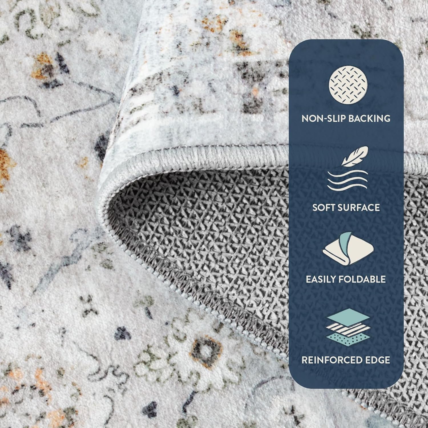 Lahome Boho Light Blue Area Rug 8x10 for Living Room, Soft Floral Rugs for Bedroom Aesthetic, Washable Floor Carpet Non Slip Indoor for Dining Room Home Decor