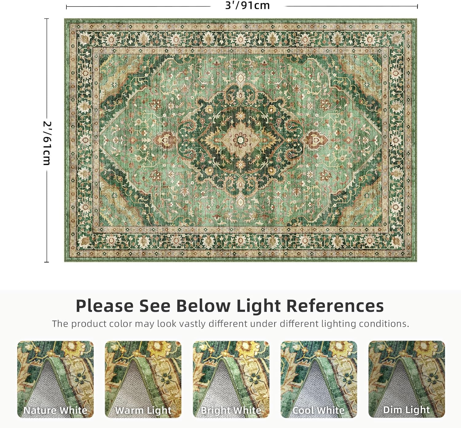 Green Area Rug Entryway Rugs for Bedroom Bathroom Kitchen - 2x3 Small Soft Rugs Low Pile Keep Off Rug Carpet Washable Rug Oriental Indoor Boho Area Rug Cute 2x3ft