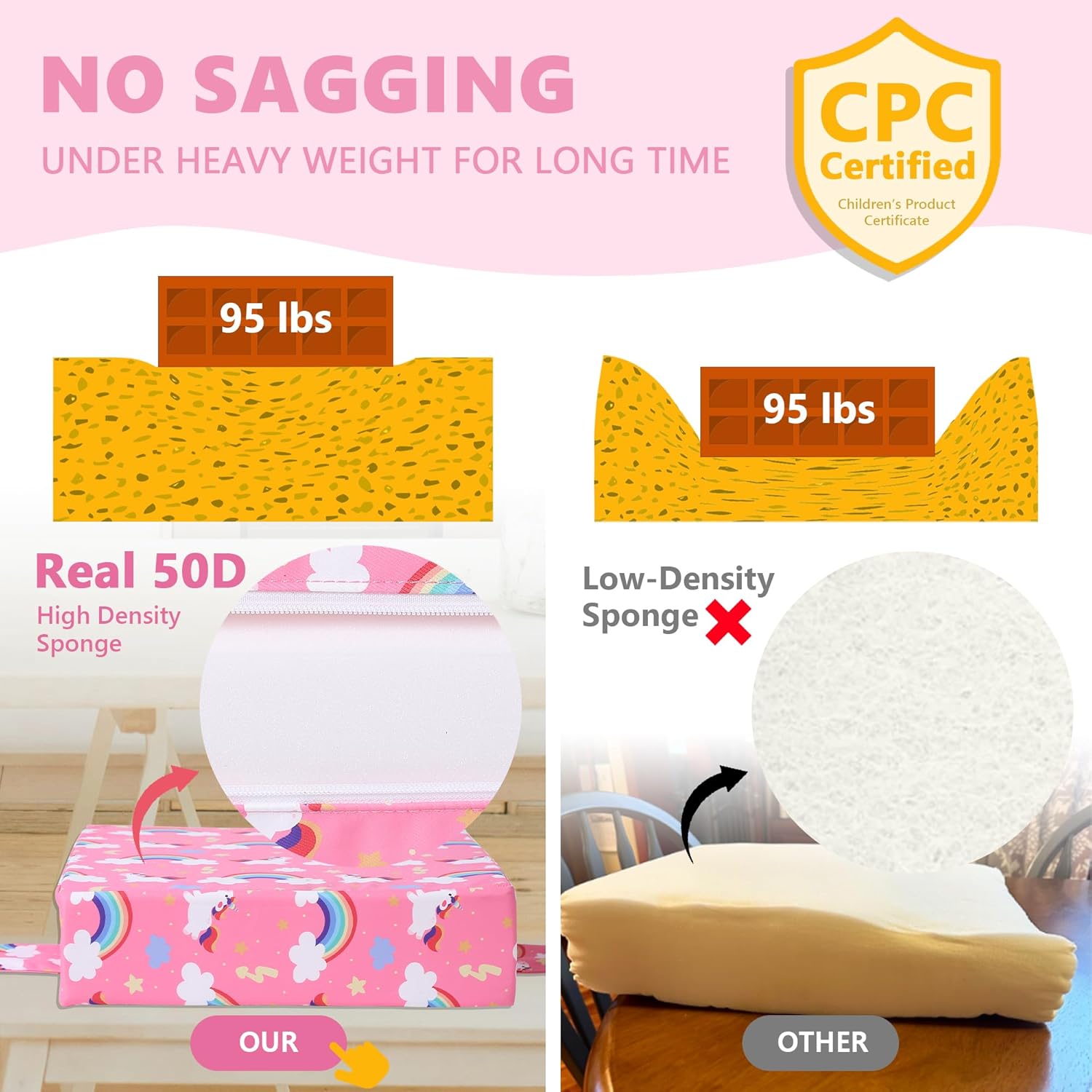 - 【REAL 50D Sponge, ZERO Sagging】The Booster Seat from Sylynvia Brand is of REAL 50D high-density sponge, which ensures softness and comfort while being able to withstand a weight of 80 pounds and will not sag when sitting for a long time, providing excellent support.This means that it has a long service life and your baby can use it from the age of 1 to 8 years old.