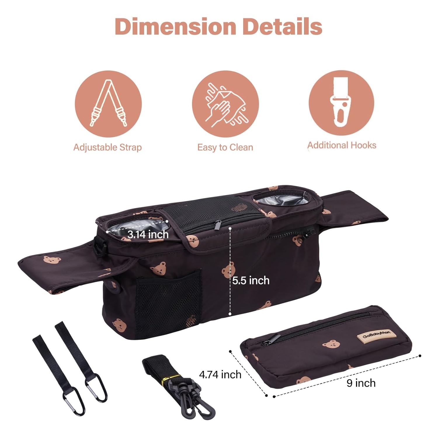 Universal Stroller Organizer with Cup Holders, Detachable Wristlet | Fits All Strollers | Stroller Diaper Bag Organizer with Phone Pocket, Insulated Bottle Holder & Storage Compartments