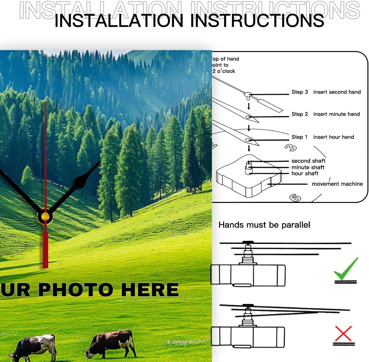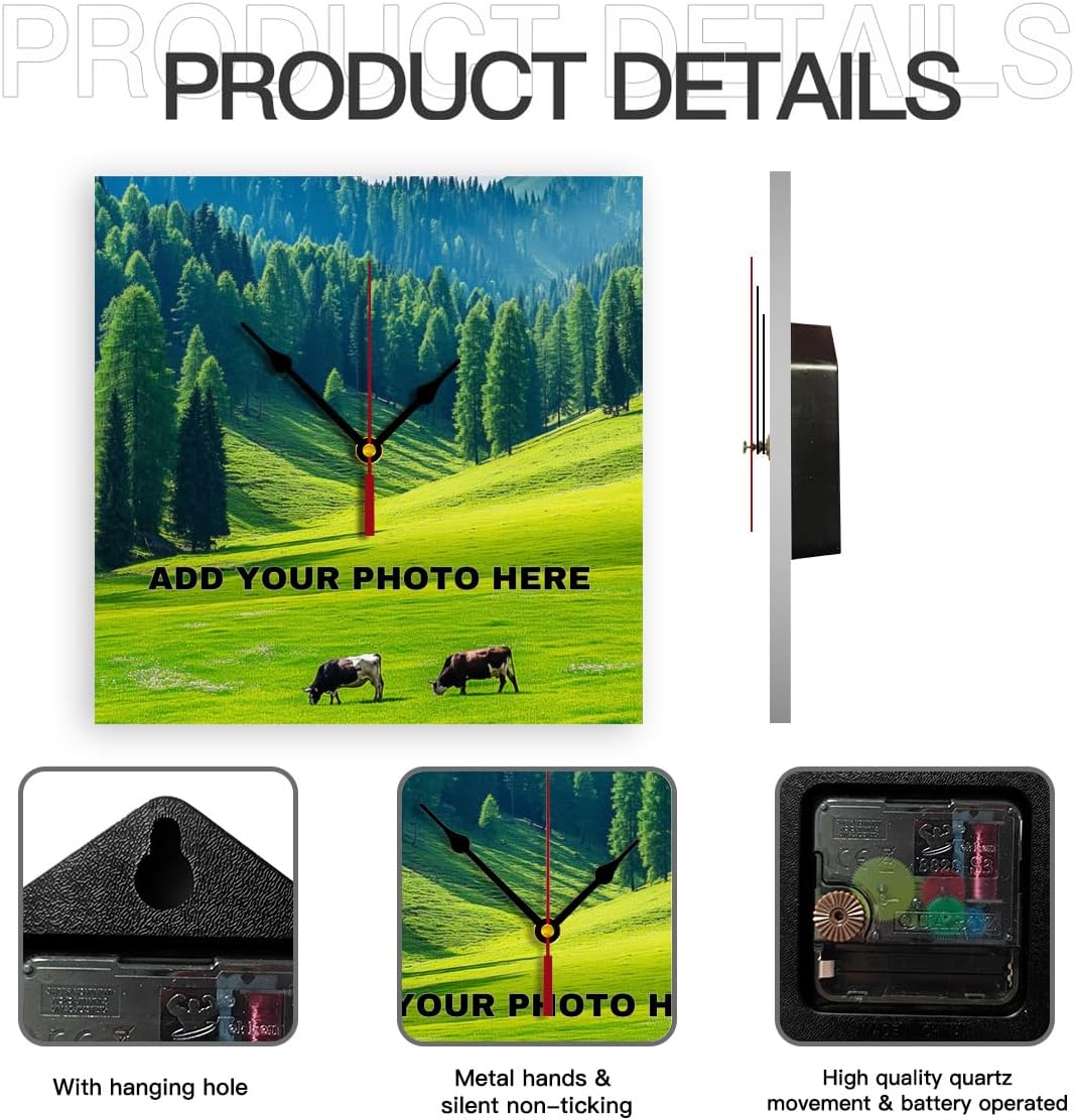 - ⏰⏰Personalized pictures clocks:Please click the“customize now“button at upper,upload your customized photo and add text.Stretch photo to fill the entire printing area.Submit high definition images for better print results.
