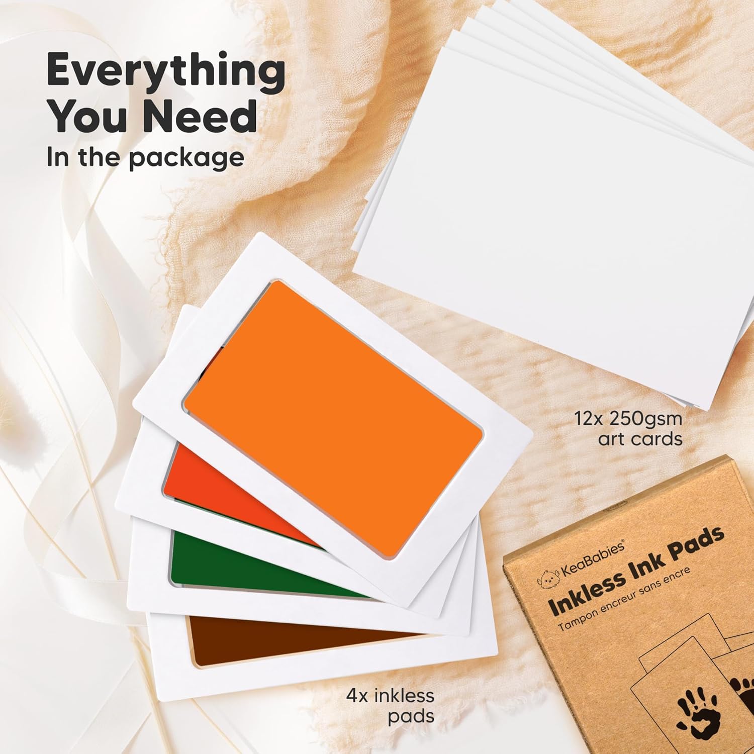 4-Pack Inkless Baby Hand and Footprint Kit - Mess Free Ink Pad for Newborn Keepsake, Dog Nose & Paw Print Kit, Clean Touch Ink Pad for Baby Hand & Footprints, Ideal New Mom Gifts (Autumn)