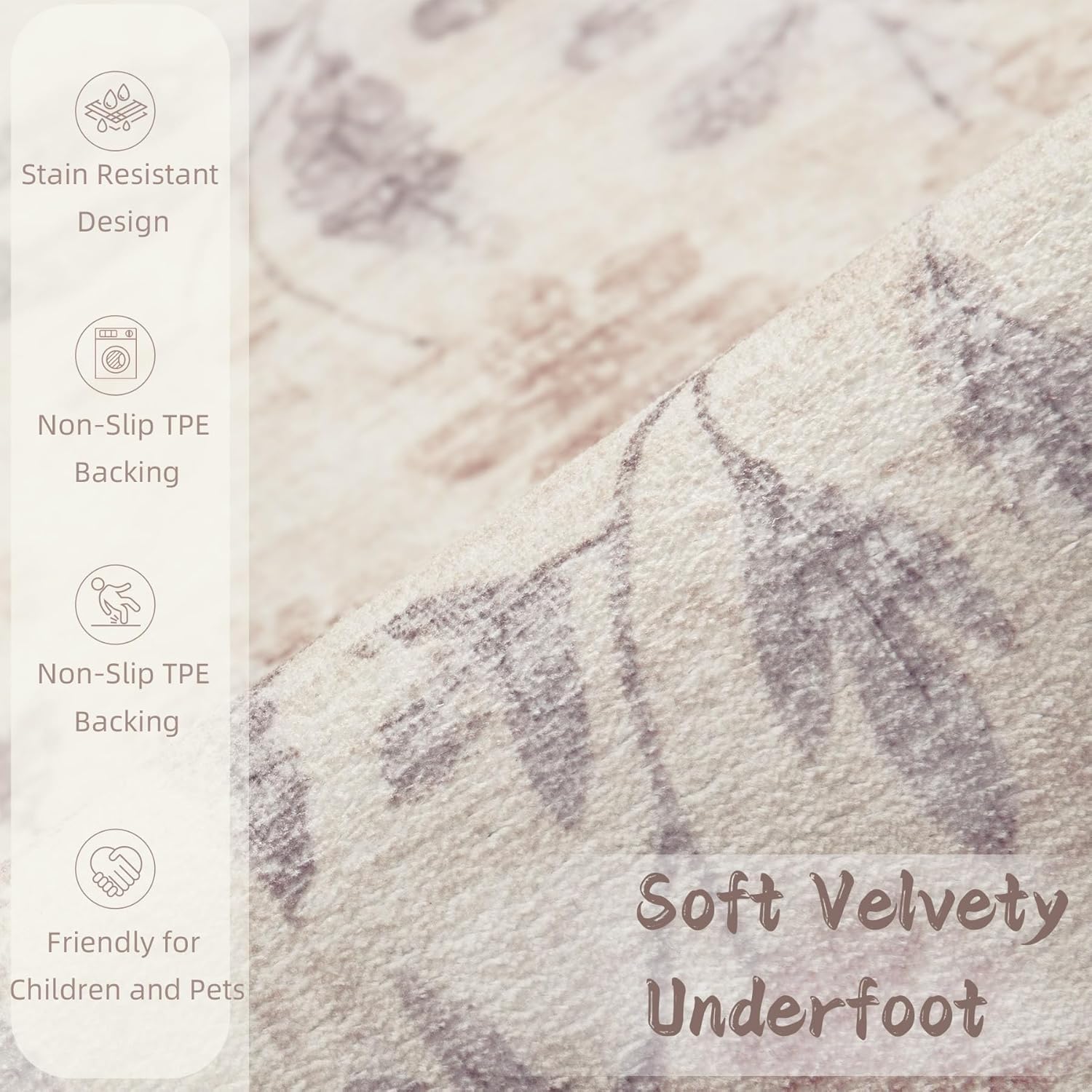 Runner Rug for Hallways 2x6, Washable Boho Runner Rug Non-Slip Kitchen Runner, Soft Low Pile Floral Carpet Runners for Hallway, Bedroom, Bathroom, Laundry, Staircase, Foyer(2'x6', Floral Beige)