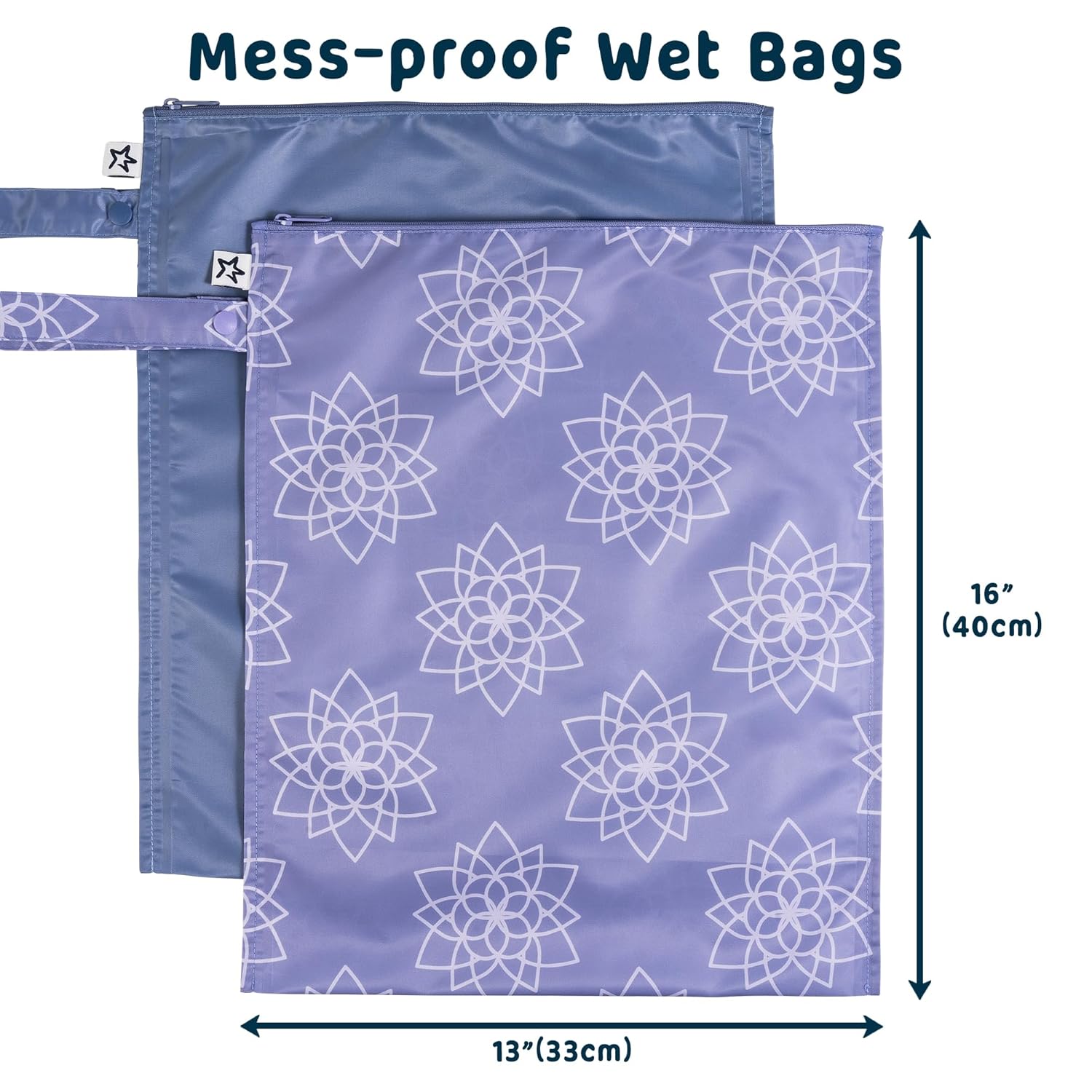 Tiny Twinkle Mess-Proof Waterproof Wet Dry Bag | 2-Pack Reusable Wet Bags for Swimsuits & Baby Clothes | Leakproof Wet Bag for Travel & Diaper Changes for Baby (Lotus)