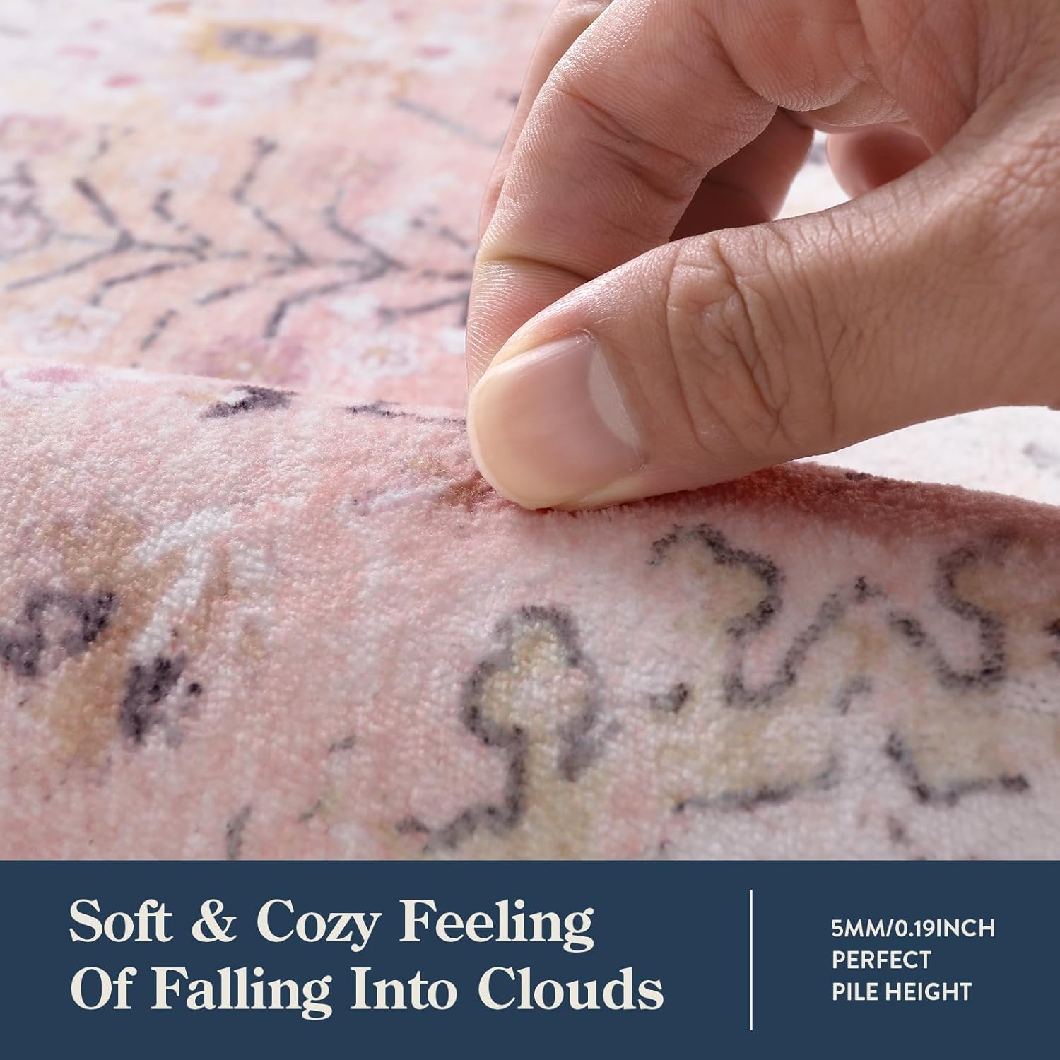 Lahome Light Pink Boho Rug 6ft, Circle Washable Area Rugs for Playroom Kids Room, Soft Floral Nursery Round Carpet Non Slip, Pastel Floor Carpet for Bedroom Living Room