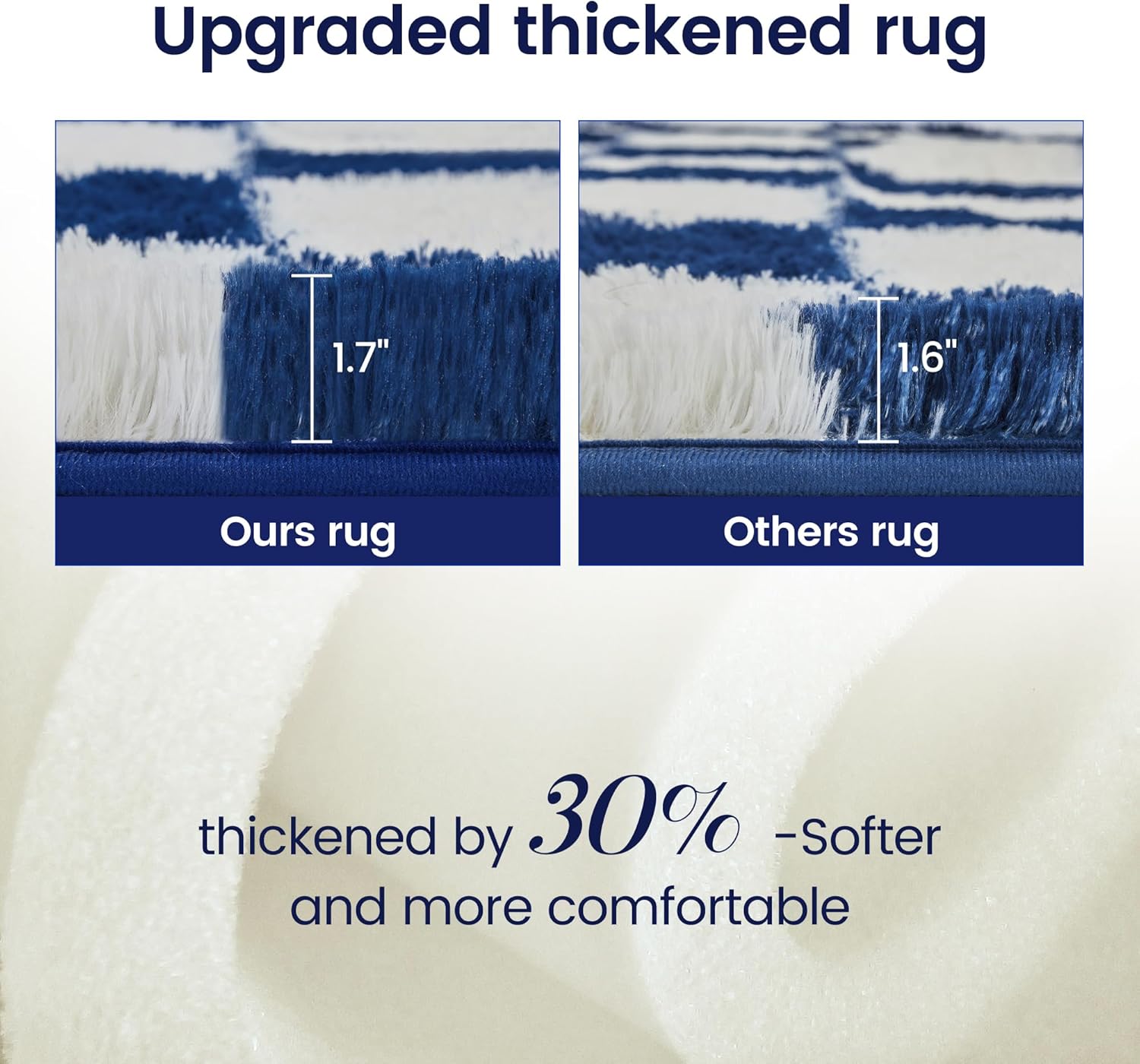 - SUPER FLUFFY- TOOHUB's Fluffy checkered rug is made with high pile, super long and super fine wool and padded memory foam cotton. It gives your feet a cloud-like comfort. You will be surprised not only by the design of the rug but also by its fluffiness and softness. Perfect for families with small children or pets.