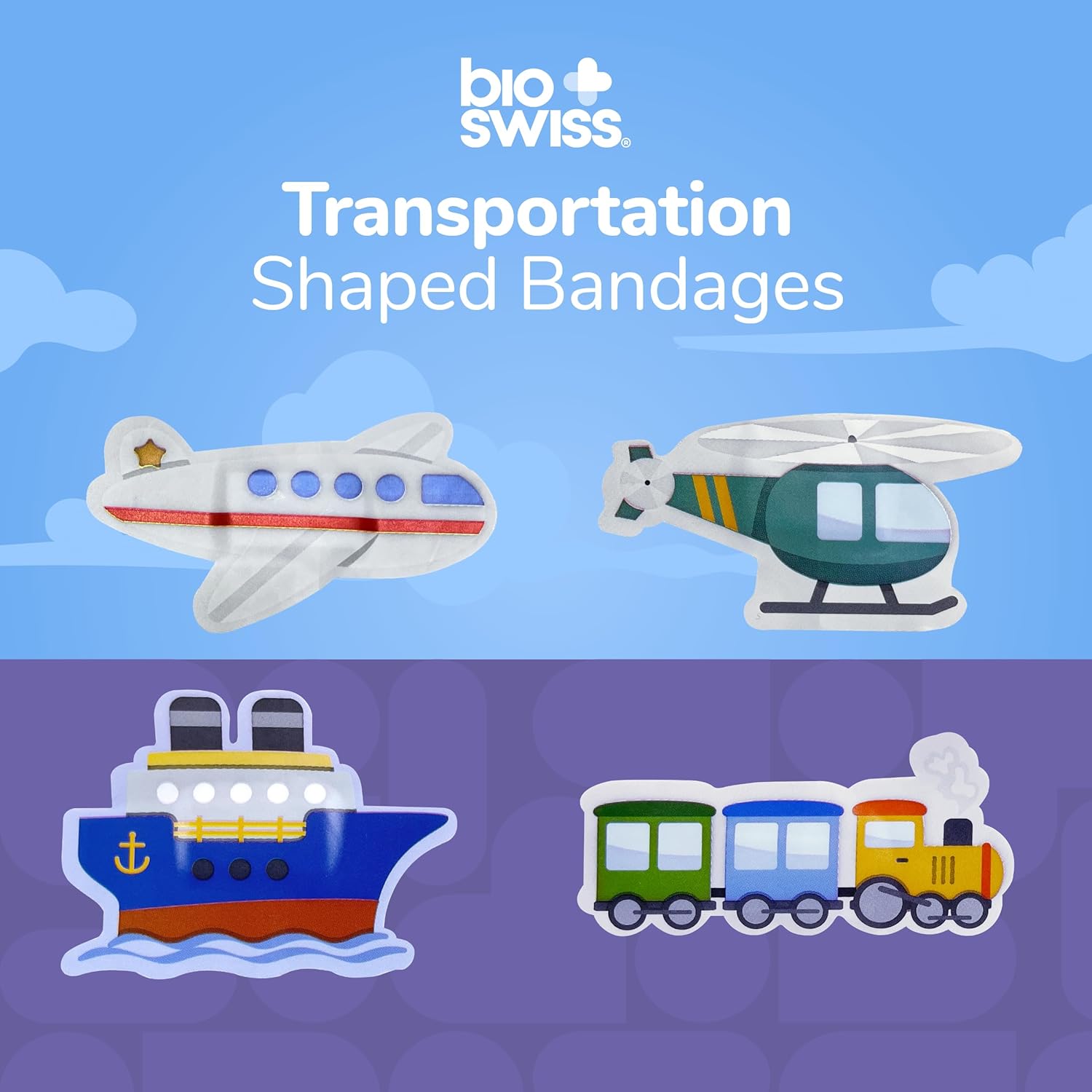 BioSwiss Bandages, Transportation Shaped Self Adhesive Bandage, Latex Free Sterile Wound Care, Fun First Aid Kit Supplies for Kids and Adults, 24 Count