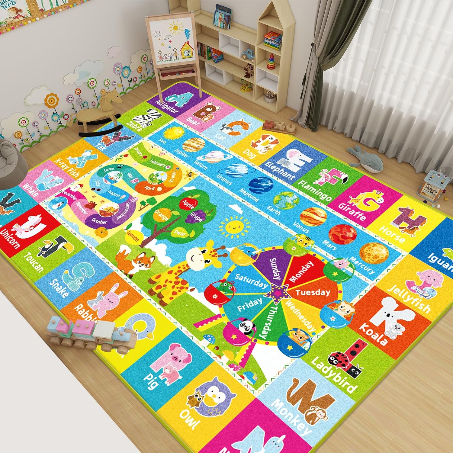 - Fun & Educational Design: Designed to engage and educate, this playroom rug introduces children to a variety of topics including animals, colors, shapes, numbers, seasons, and more. Its vibrant, eye-catching illustrations stimulate your childβs cognitive development and foster early learning through play, making it an enjoyable experience for both fun and education.