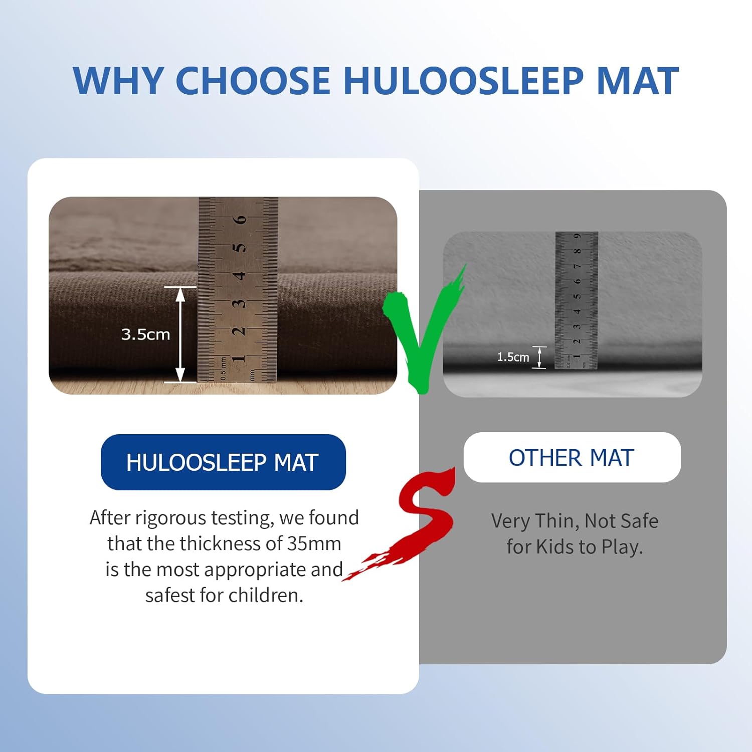 - 【FITS TO MULTIPLE OCCASION】:It can be used as a yoga mat for exercise, a tatami rug for a traditional Japanese style, and is compatible with floor heating. It provides a comfortable spot for adults to relax and watch TV, as well as a pet-friendly cushion for your furry friends to sleep on. The design helps absorb sound, reducing noise in busy homes. With a thickness of 35mm, this kids' play mat ensures your bedroom or living room is an incredibly comfortable personal space. Unlike most baby play mats made of solid plastic that clash with home decor, the HulooSleep Crawling Mat elegantly addresses this issue