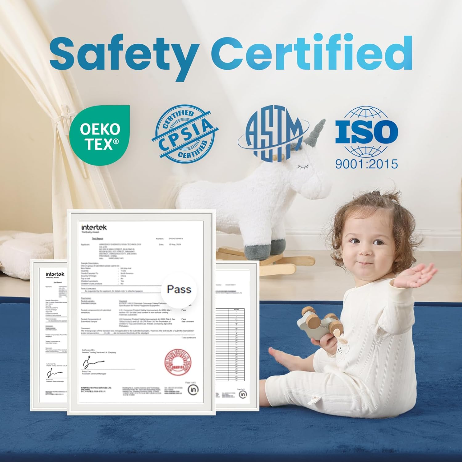 - 【Premium Safety Certified】:Our baby mat meets the highest safety standards, featuring OEKO-TEX certified fabric and CERPITUR-US certified elasti-foam,ensuring no harmful chemicals. It also passes ASTM & CPSIA tests, making it safe for infants & toddlers.
