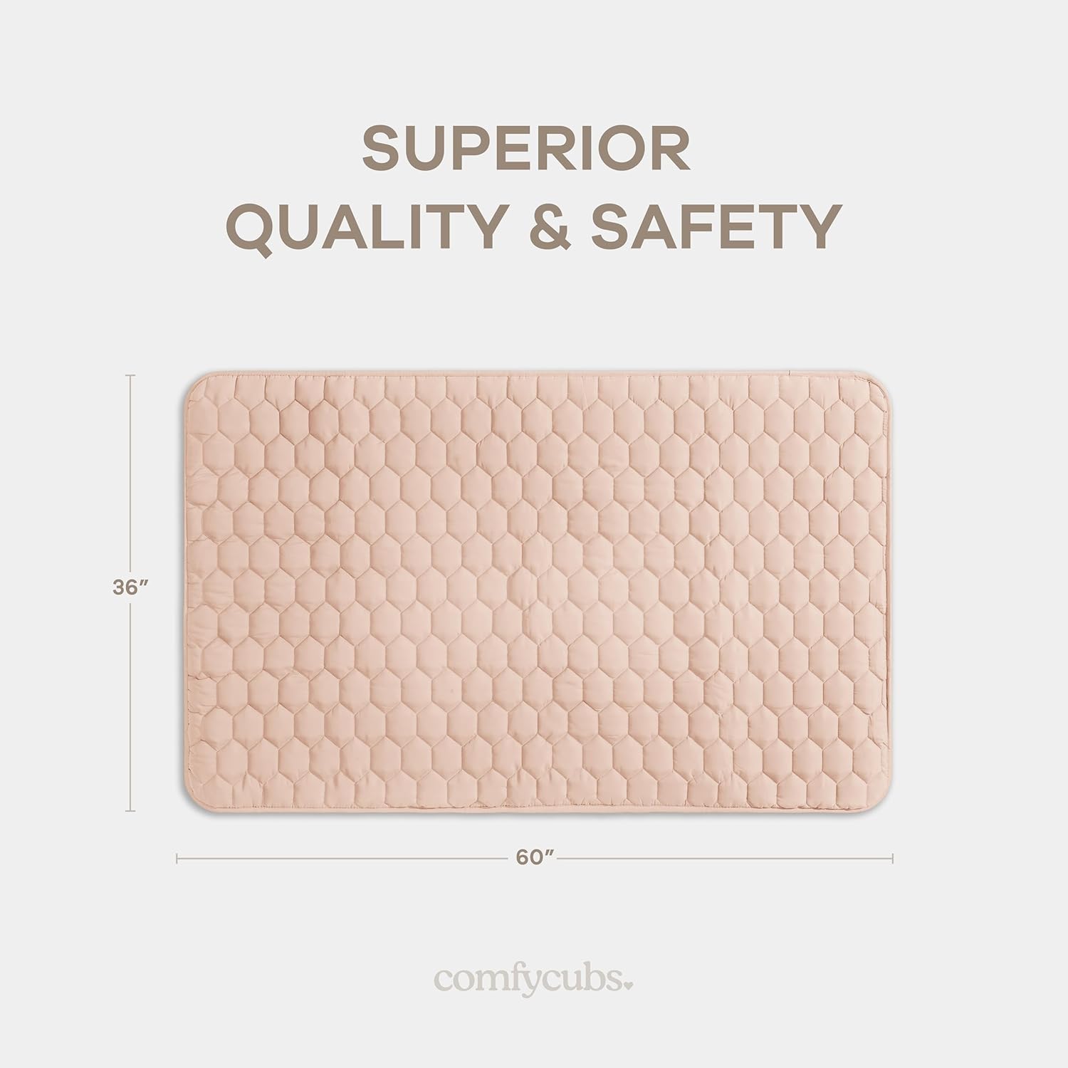Comfy Cubs Rectangle Kids Play Mat - Small 36 x 60 inches Soft Quilted Baby Floor Mat with Non-Slip Bottom - Plush Design for Toddlers' Playtime and Relaxation - Comfortable and Durable - Blush