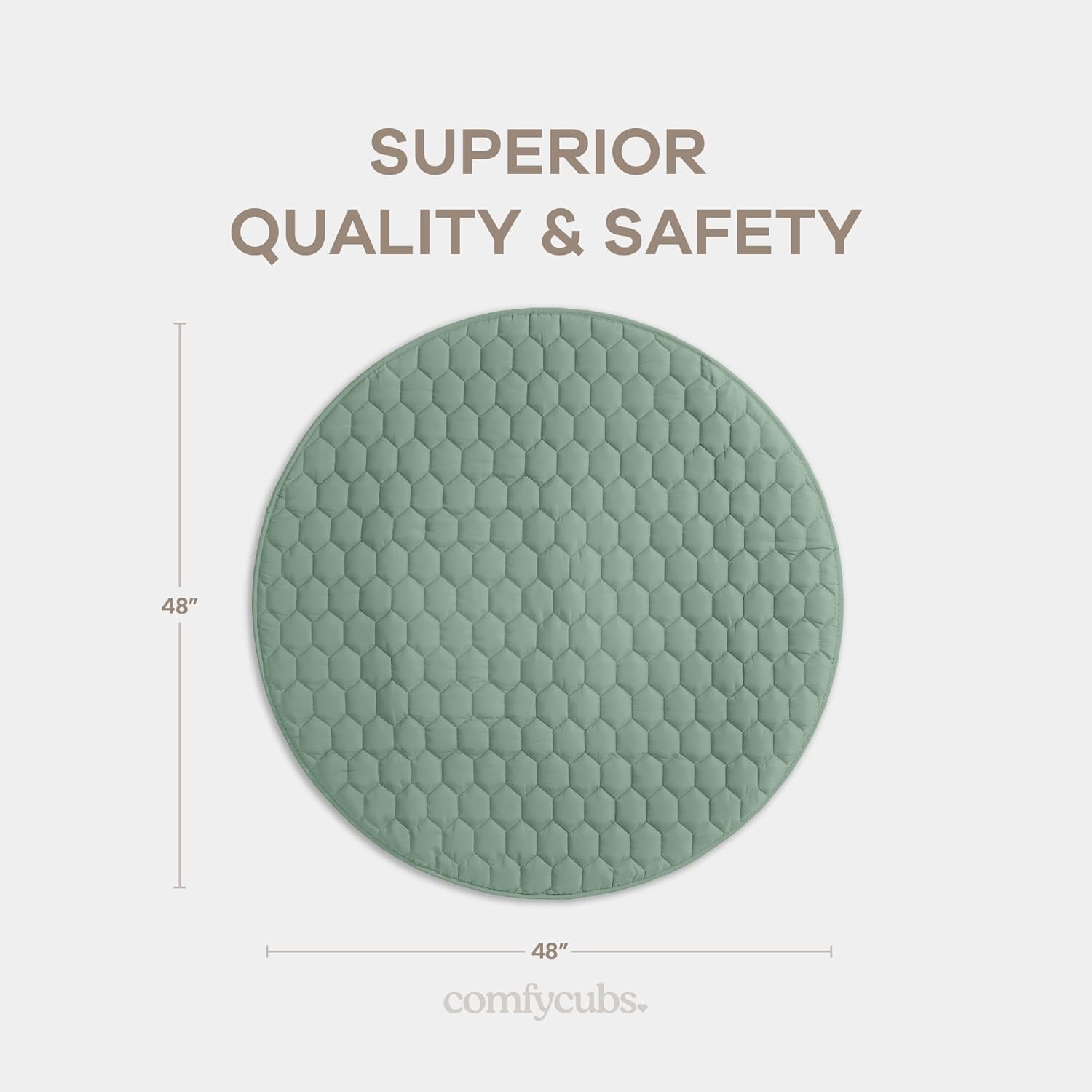 Comfy Cubs Round Kids Play Mat - Medium 48 inches Soft Quilted Baby Floor Mat with Non-Slip Bottom - Plush Design for Toddlers' Playtime and Relaxation - Comfortable and Durable - Fern