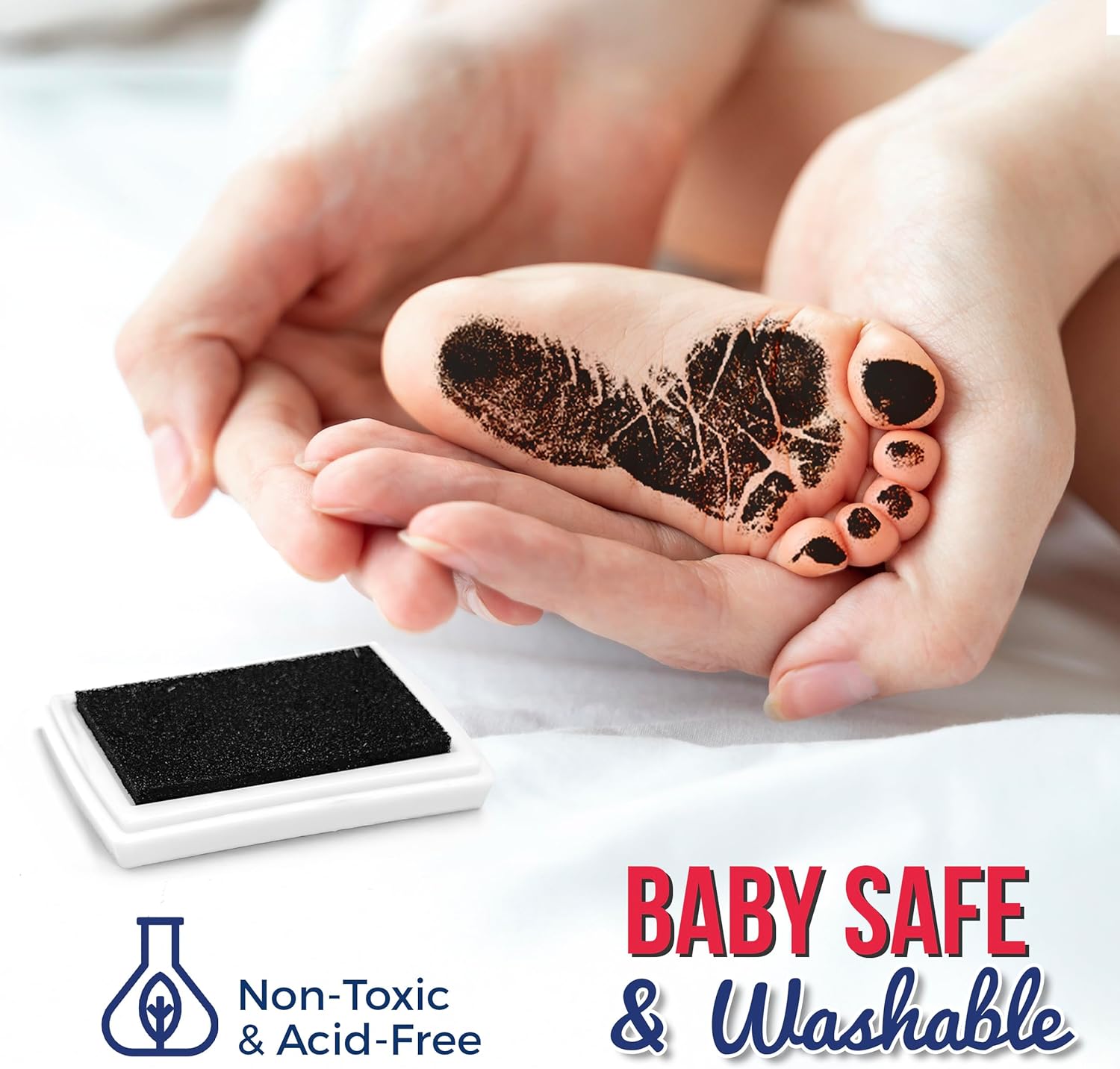 - š¼ NONTOXIC INK PAD: Our baby ink hand and footprint kit not only features non-toxic inkpads, ensuring utmost safety for your infant's delicate skin but also includes gentle water wipes for convenient cleanup, providing a seamless and worry-free experience in capturing your little one's precious handprint and footprint.