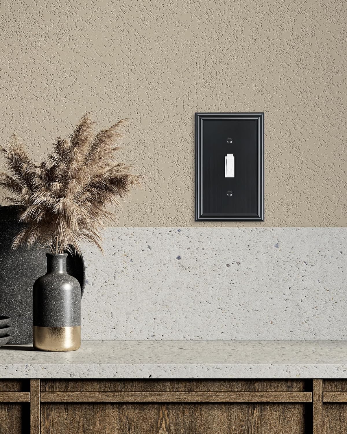- Elevate Home Charm - Features simple, clean, and elegant lines with brushed texture, the black finish wall plate can easily blend into any interior design style, offering a sophisticated look and adding elegance to your decor.