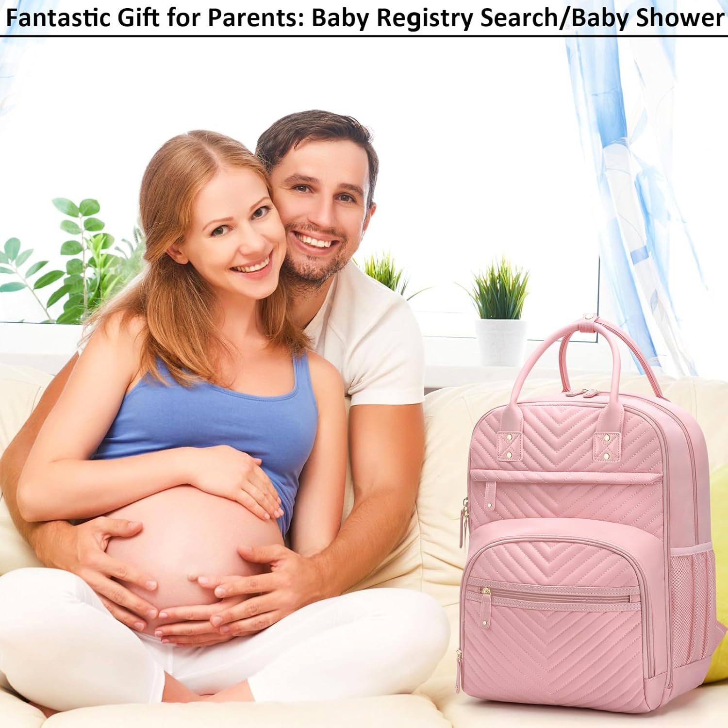 Diaper Bag Backpack for Women with Changing Pad, Baby Bag with Insulated Pockets Multifunctional Diaper Bags For Baby Girl Boy Waterproof Baby Bags For Boys Girls Maternity Bag Baby Pink