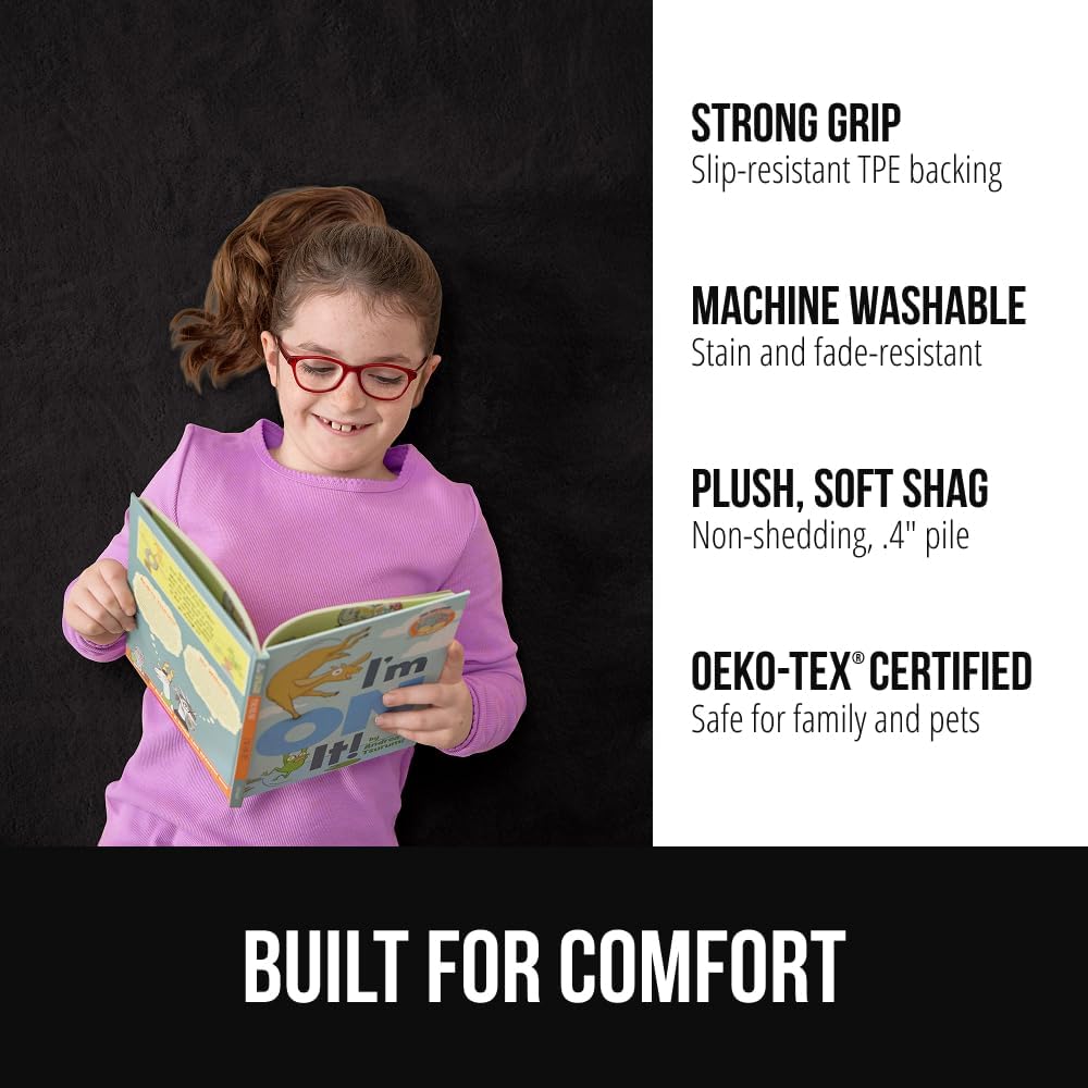 GORILLA GRIP Ultra Soft Washable Area Rug, 8x10, Stain and Slip Resistant Plush Thick Carpet for Bedroom Living Room, No Shed Floor Rugs, Pet Friendly, Dorm Essentials, Kids Nursery Home Decor, Black