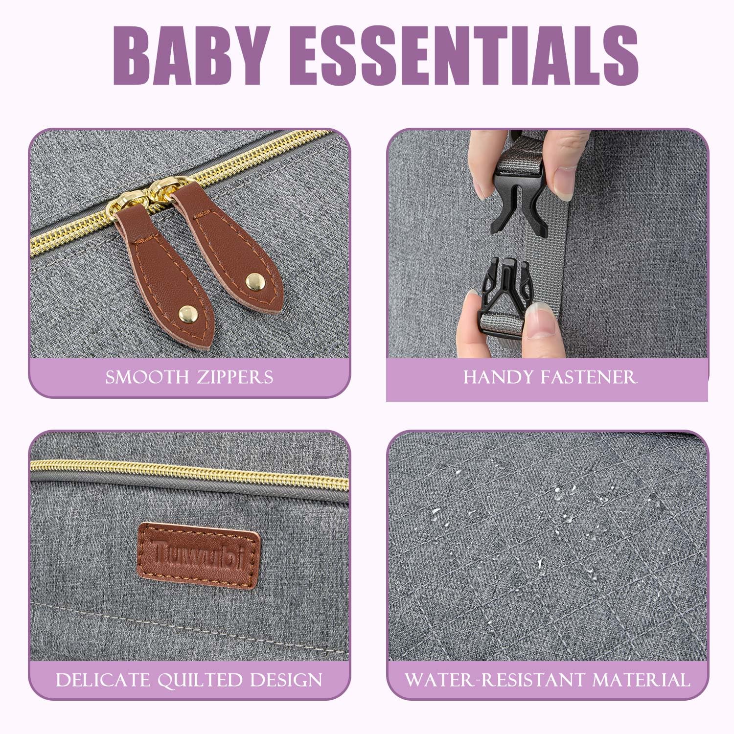 - Spacious and Organized Storage: Tuwubi large diaper bag tote features a roomy main compartment with two-way zippers, offering ample space for essentials such as formula, diapers, and clothing. It includes two dedicated bottle pockets and a waterproof internal compartment for clean clothes, In addition, there are multiple compartments for independent storage,ensuring everything you need is neatly organized and easily accessible.