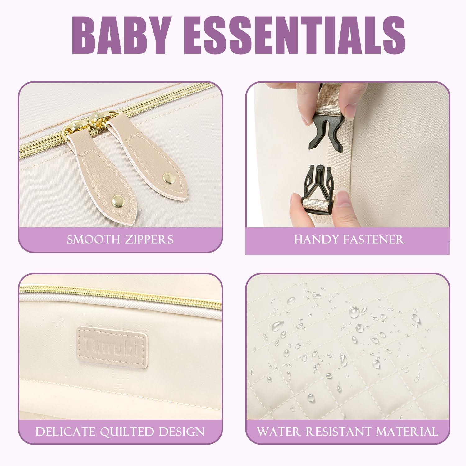 - Spacious and Organized Storage: Tuwubi large diaper bag tote features a roomy main compartment with two-way zippers, offering ample space for essentials such as formula, diapers, and clothing. It includes two dedicated bottle pockets and a waterproof internal compartment for clean clothes, In addition, there are multiple compartments for independent storage,ensuring everything you need is neatly organized and easily accessible.