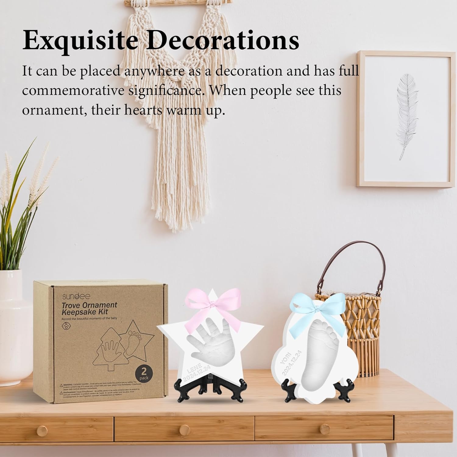 - Record Your Baby's Growth:Create Meaningful memories Don't let newborn exhaustion erase those precious memories.This baby souvenir clay ornament captures their perfect little handprint, footprints, fingers and toes. It's a must for newborns!