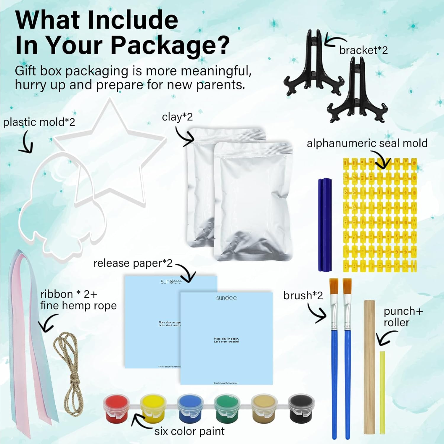 - Neat and Easy to Use:The kit includes a neat, non-stick impression material that is dry and soft and prevents breakage or cracks. It comes with a rolling pin, plastic punch, clay-formed ring and Hemp rope for easy hanging.