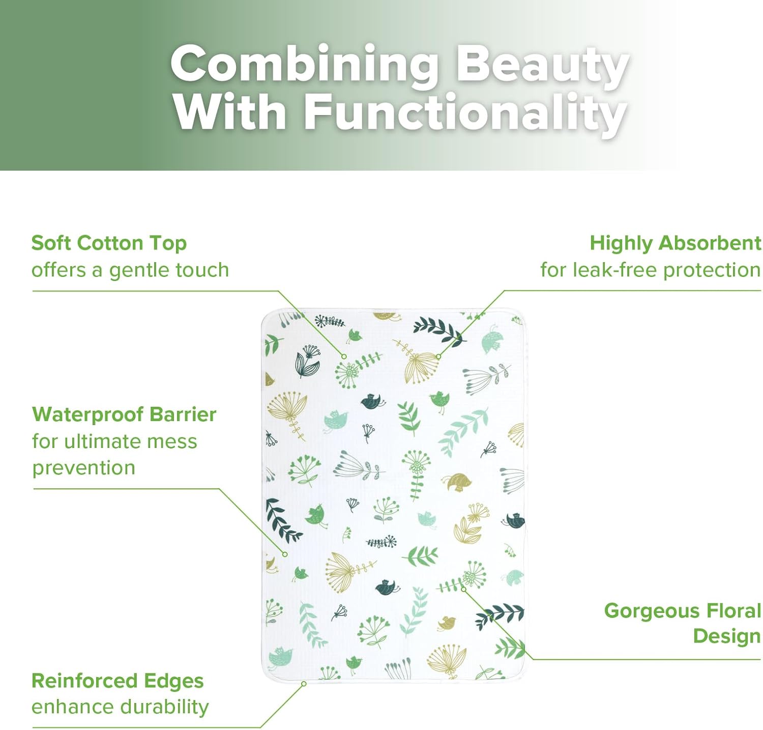 haakaa Waterproof Changing Pad Liners, 100% Cotton, Soft & Breathable (1pc, 19.5" x 27.5" Spring Breeze)