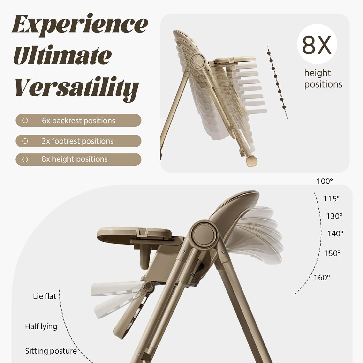 Multi Functional All in 1 Baby High Chair Swings for Infants Foldable Rocking 8 Level Height Adjustment Eco Friendly Washable PU Cushion Ultimate Baby Feeding Chair (Brown)