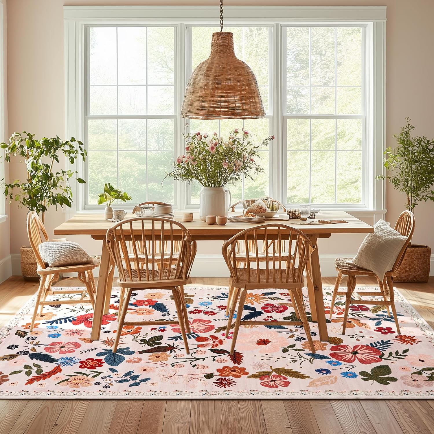 - Timeless Design for Any Space: Featuring Boho floral patterns and warm, rich colors, this area rug brings both elegance and coziness to your home. Its 0.3β pile height makes it perfect for high-traffic areas and underneath furniture, whether youβre creating a cozy living room or a stylish dining area.