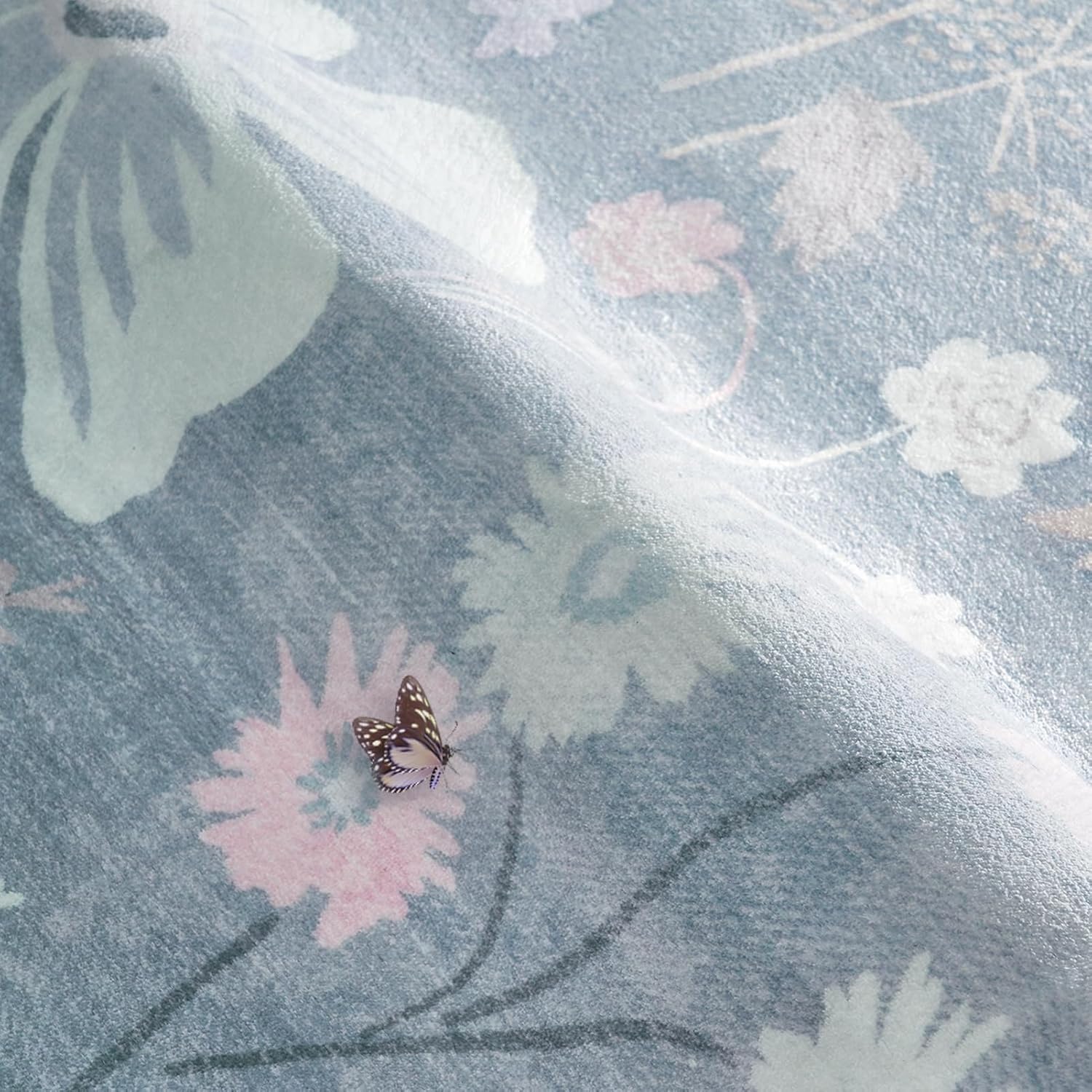 Blue 6x9 Area Rugs Machine Washable Low Pile Non Slip Stain Resistant for Living Room Big Boho Vintage Flower Pattern Carpet Rug Ultra-Thin for Bedroom Dining Room Kids Playroom