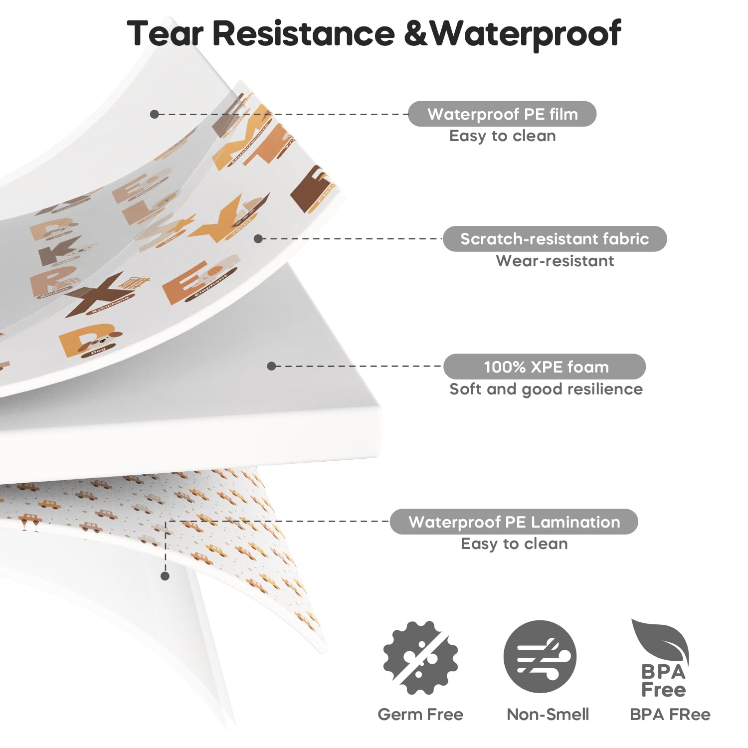 - Waterproof and Easy to Clean: With a waterproof surface, spills and messes are no problem! Simply wipe down the mat with a damp cloth for quick and easy clean-up, ensuring a hygienic play space for your baby.