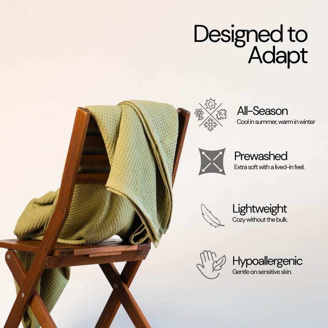 Salt Earth GOTS Certified 100% Organic Cotton Throw Blanket, 108"X90" Blankets & Throws for Bed, Throw Blanket for Couch,Modern & Cozy Blanket, All Seasons, Waffle Blanket, Soft Blanket (Mosstone)
