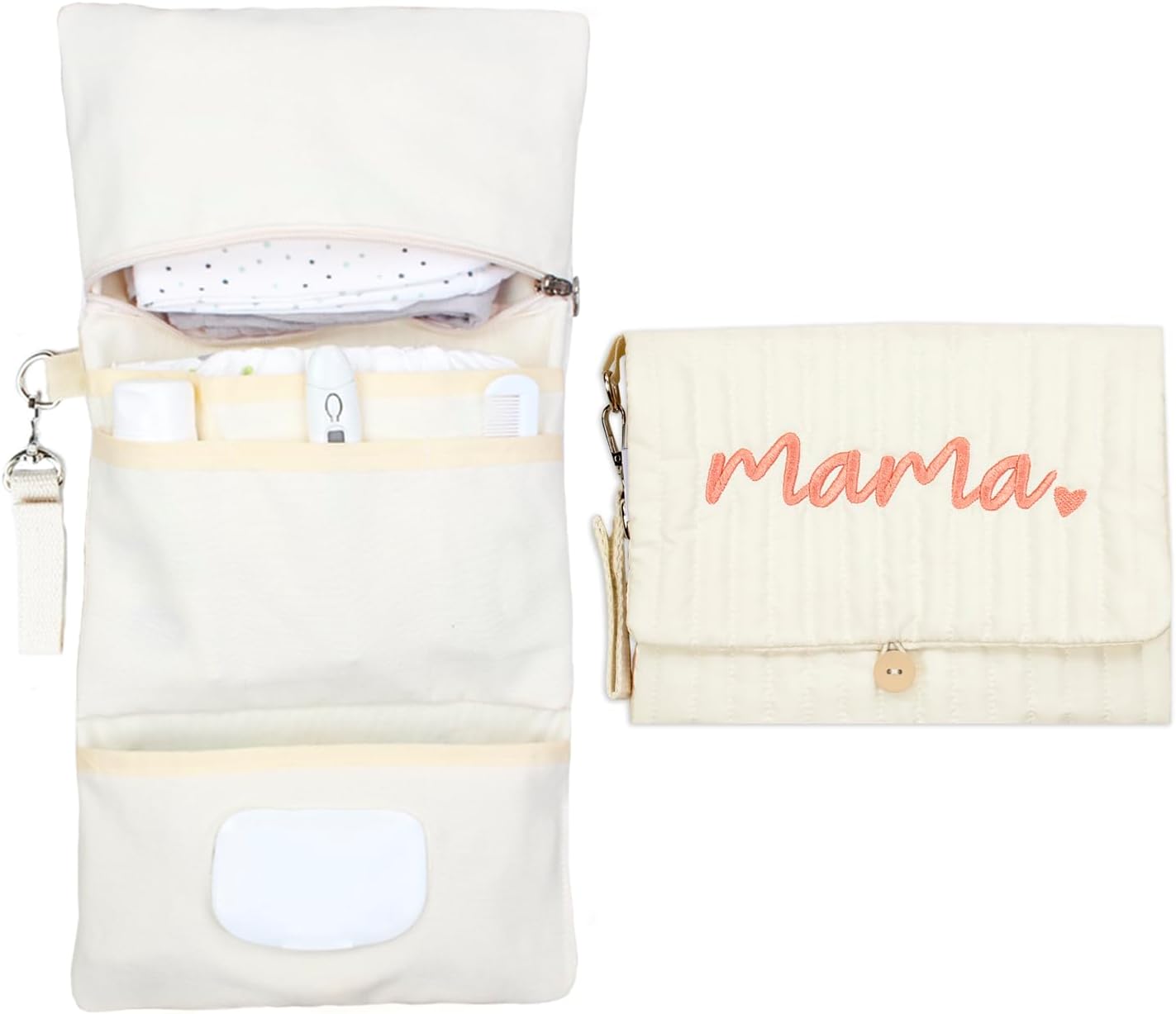 Baby Bag Organizer, Portable Baby Stroller Mini Diaper Bag Handbag Travel Set with, Quilted with Stroller Straps (Mama)
