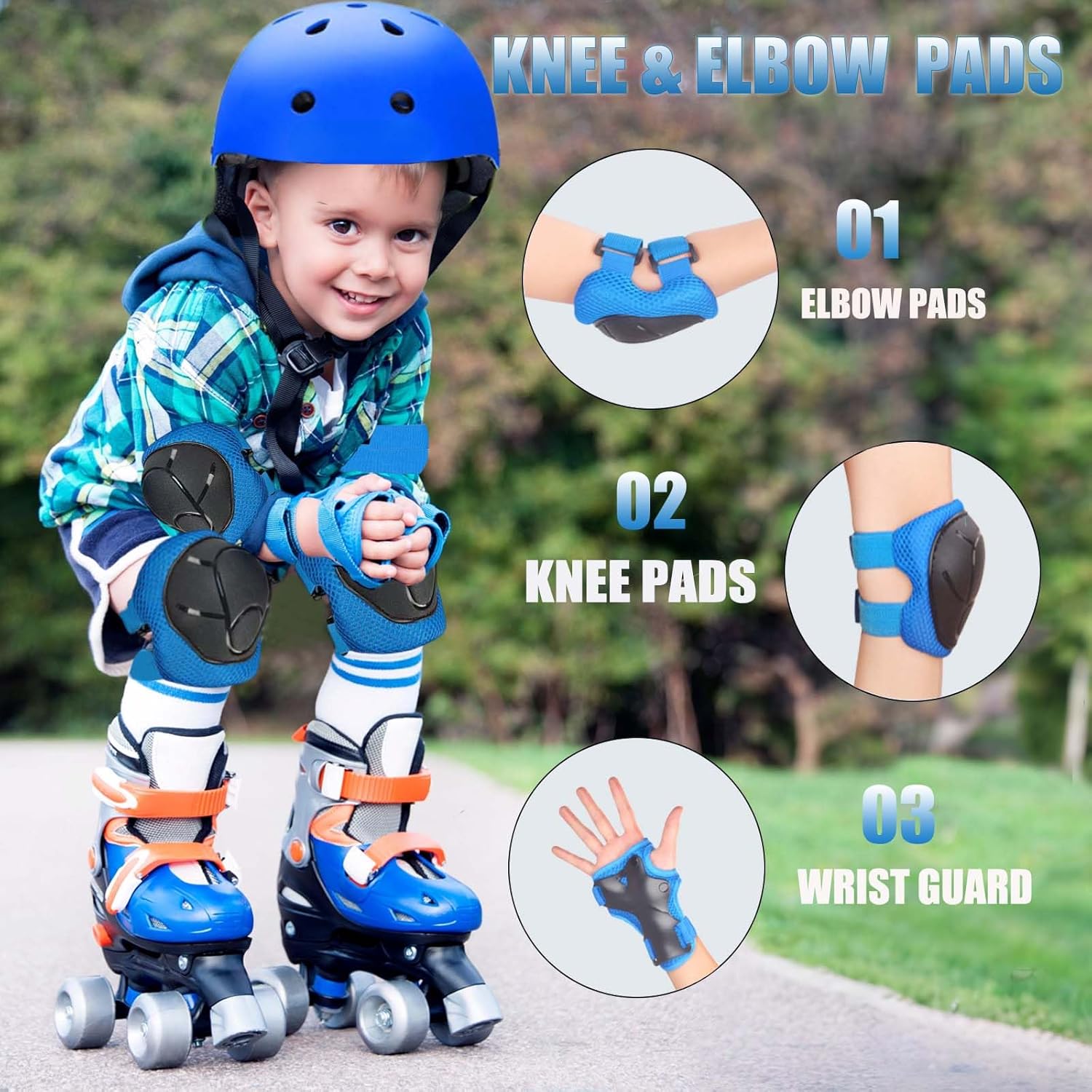 - 【Perfect Gift For Boys & Girls】set Includes 1 x Helmet, 2 x Elbow Pad, 2 x Knee Pad, 2 x Wrist Pad this one The kids knee and elbow pads for kids is the perfect gift on Children's Day, Christmas,Christmas etc.Perfect for any youth, girls, boys.It's a good present as a children & kids gift. If our product does not meet your current criteria, please send it back to us for a replacement .