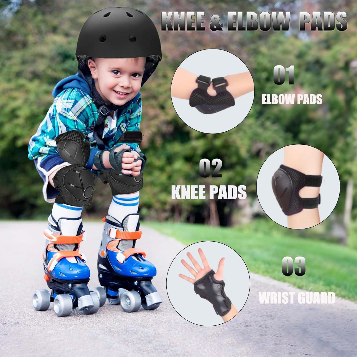 - 【Perfect Gift For Boys & Girls】set Includes 1 x Helmet, 2 x Elbow Pad, 2 x Knee Pad, 2 x Wrist Pad this one The kids knee and elbow pads for kids is the perfect gift on Children's Day, Christmas,Christmas etc.Perfect for any youth, girls, boys.It's a good present as a children & kids gift. If our product does not meet your current criteria, please send it back to us for a replacement .