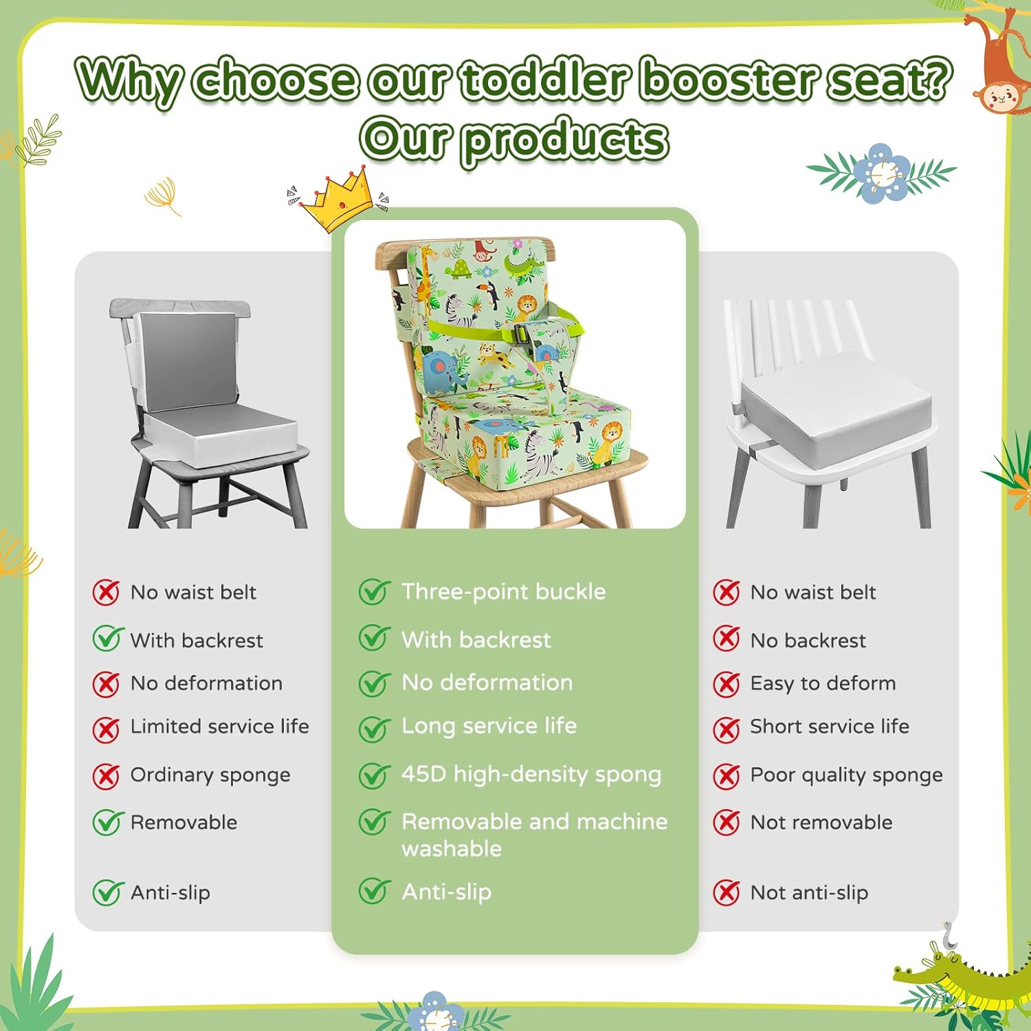 - 【Test Winner】: This 2-in-1 upgraded toddler booster seat with backrest uses 45D high-density sponge, which has 30% more filling than ordinary cushions, is thicker and does not collapse. The whole body adopts a removable high-elastic TPU cloth cover, which is effectively waterproof and easy to clean, and has excellent durability. The additional detachable backrest and adjustable safety belt help the baby develop a correct sitting posture, bringing a safe and comfortable experience to the baby.