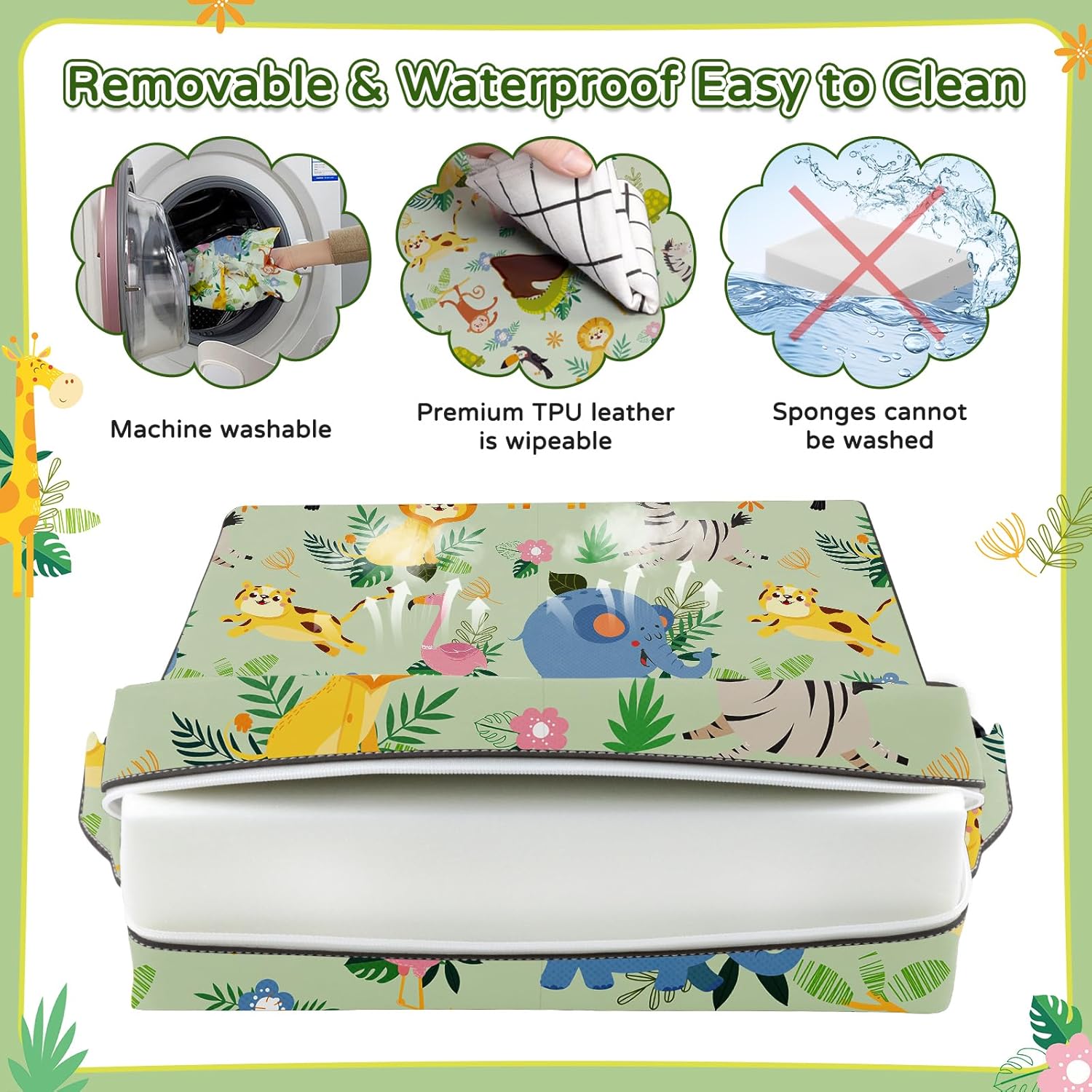 - 【Waterproof and easy to clean】: The toddler booster seat for table cover is a high-elastic TPU film that is waterproof, spill-proof, wear-resistant, and stain-resistant. It protects the sponge from moisture and is more durable than ordinary PU leather. Daily cleaning only requires wiping with a rag or baby wipes. The kids booster seat cover adopts a zipper design, which can be detached and separated from the TPU chair cover and the internal sponge, and supports machine washing or hand washing. (The washing water temperature is lower than 45°, and the sponge does not need to be washed)