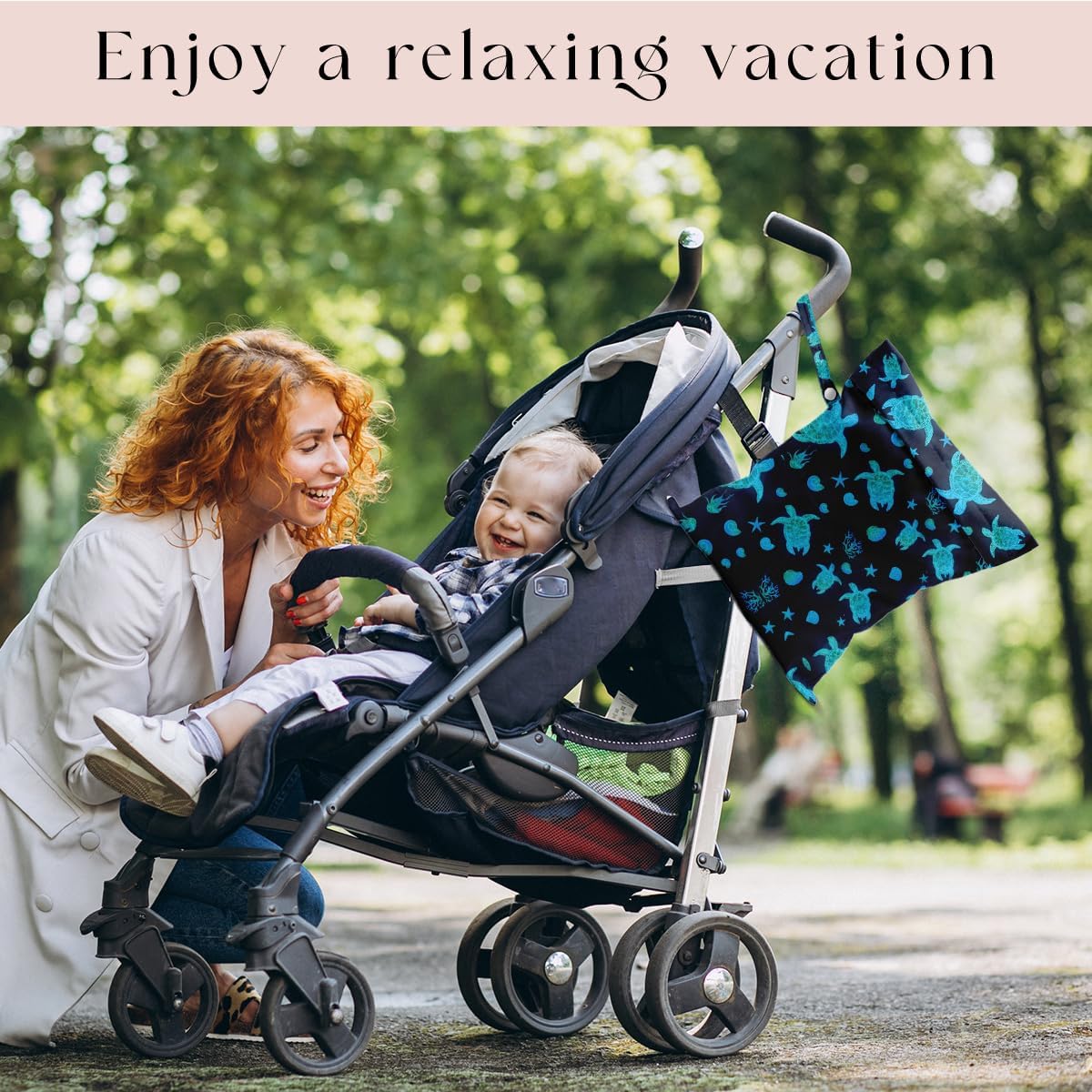 - ๐ ENOUGH SPACE โYou will get 1 wet bag, the size is approx.: 10.2" x 12.6". Comes with a handle so that you can easily pick the bag up or hang it. Each can hold approximately 5 cloth diapers. They are light weight, easy to carry, swimsuit bag, Beach essentials.