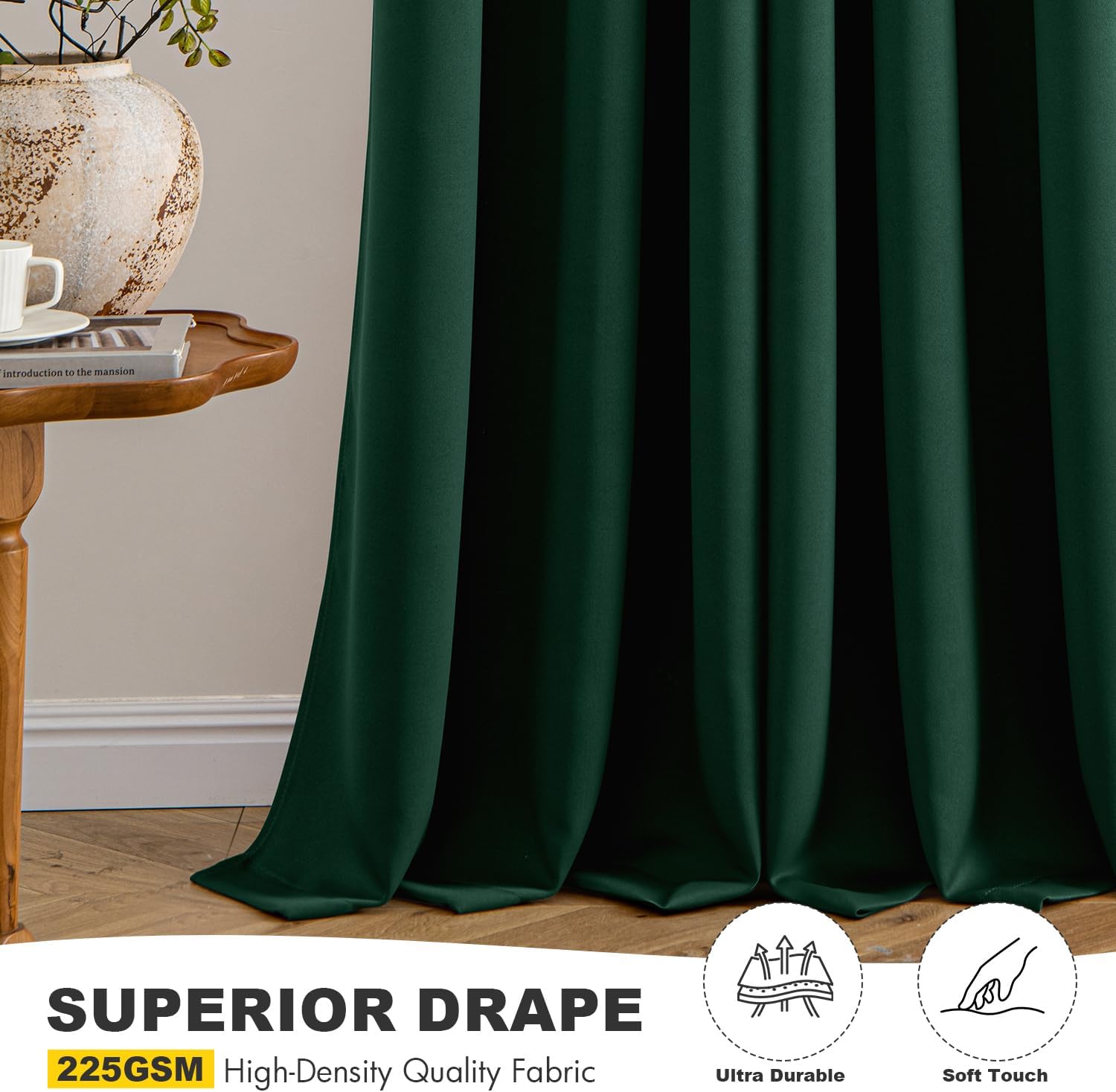 - High-Quality Material: Crafted from high-quality 225GSM polyester fabric, these curtains offer enhanced durability and elegant drape. The soft blackout material features triple-layer weaving technology, with a middle layer of black yarn for superior light blocking and privacy. Both sides feature the same refined color, ensuring a seamless look that elevates your homeβs aesthetic with understated sophistication