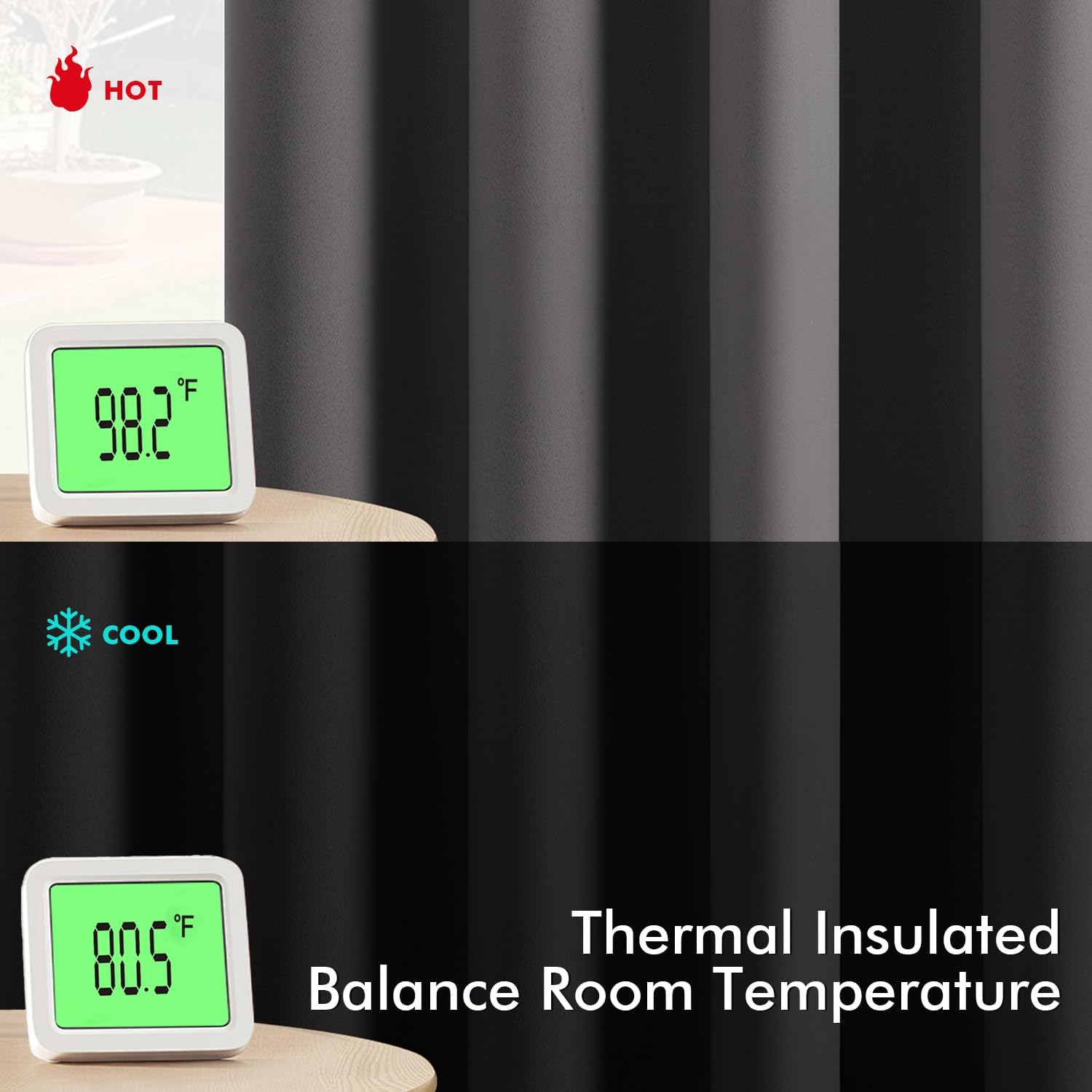 - High-Quality Material: Crafted from high-quality 225GSM polyester fabric, these curtains offer enhanced durability and elegant drape. The soft blackout material features triple-layer weaving technology, with a middle layer of black yarn for superior light blocking and privacy. Both sides feature the same refined color, ensuring a seamless look that elevates your homeβs aesthetic with understated sophistication